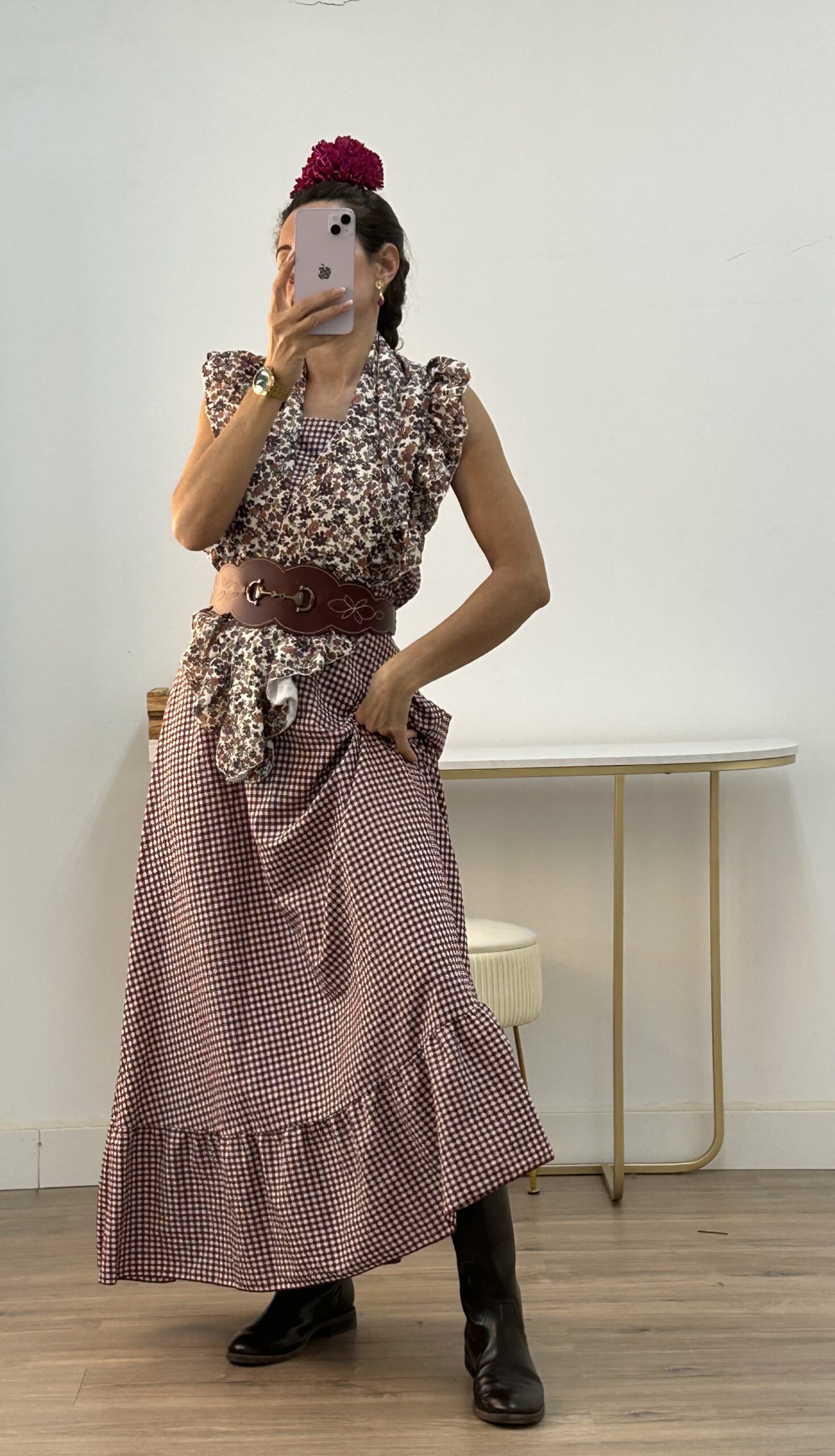 - Bata en tejido de vichy de Bambula disponible en ocho colores, fresquita y cómoda para Caminos.