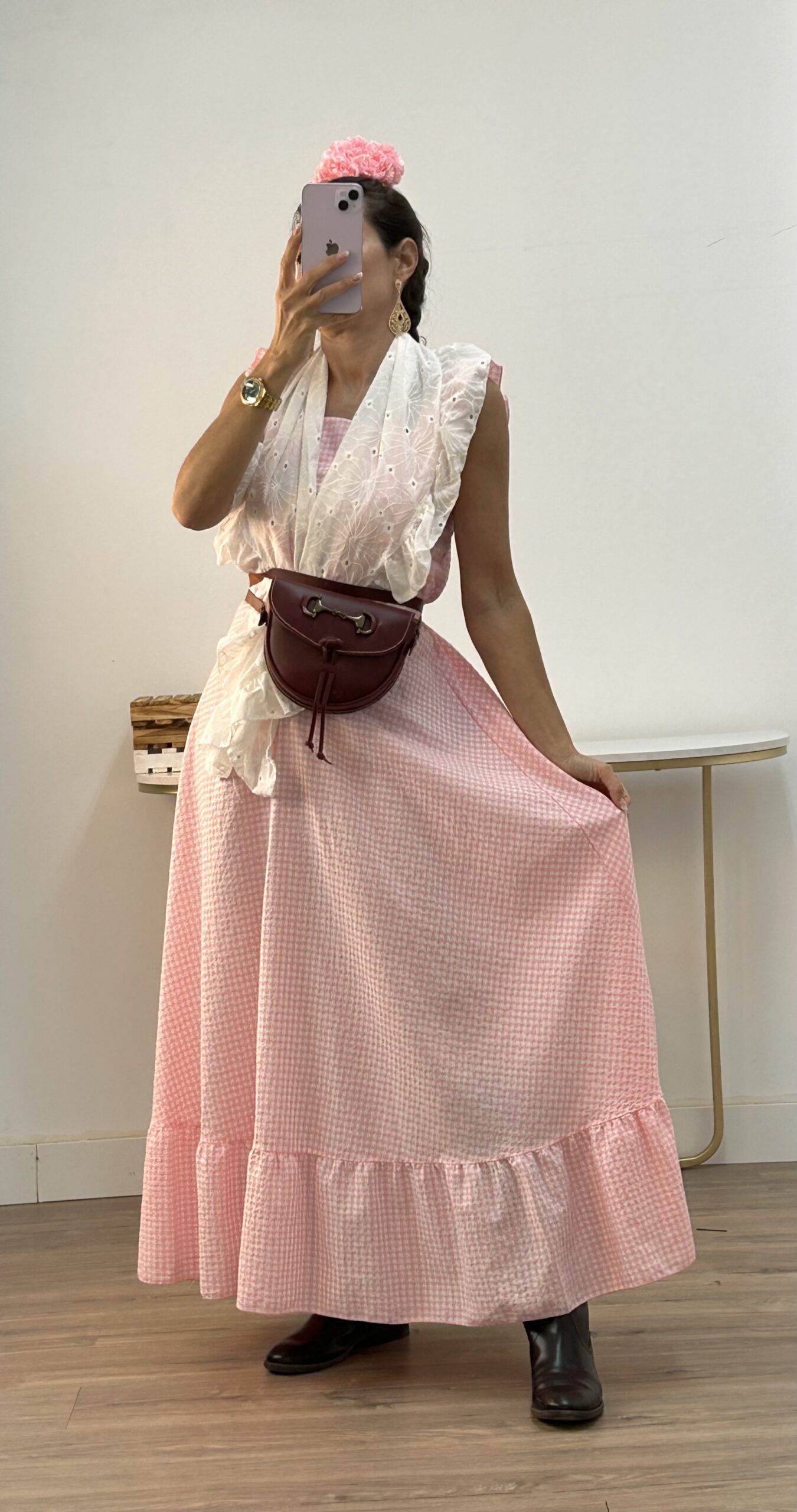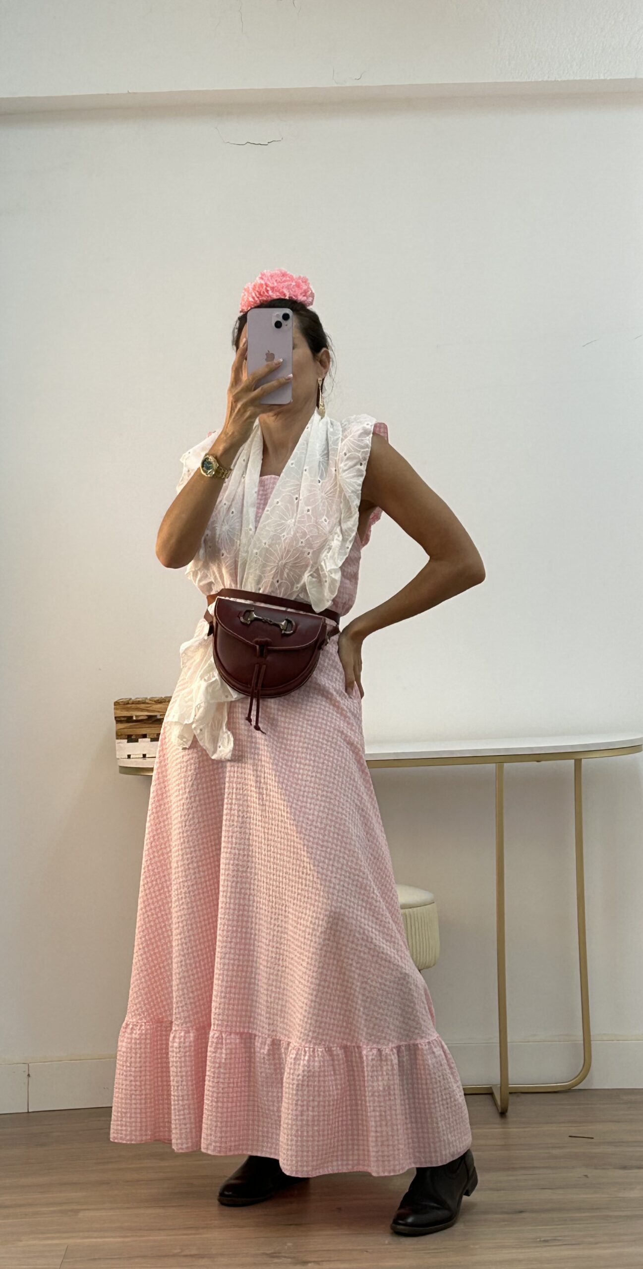- Bata en tejido de vichy de Bambula disponible en ocho colores, fresquita y cómoda para Caminos.