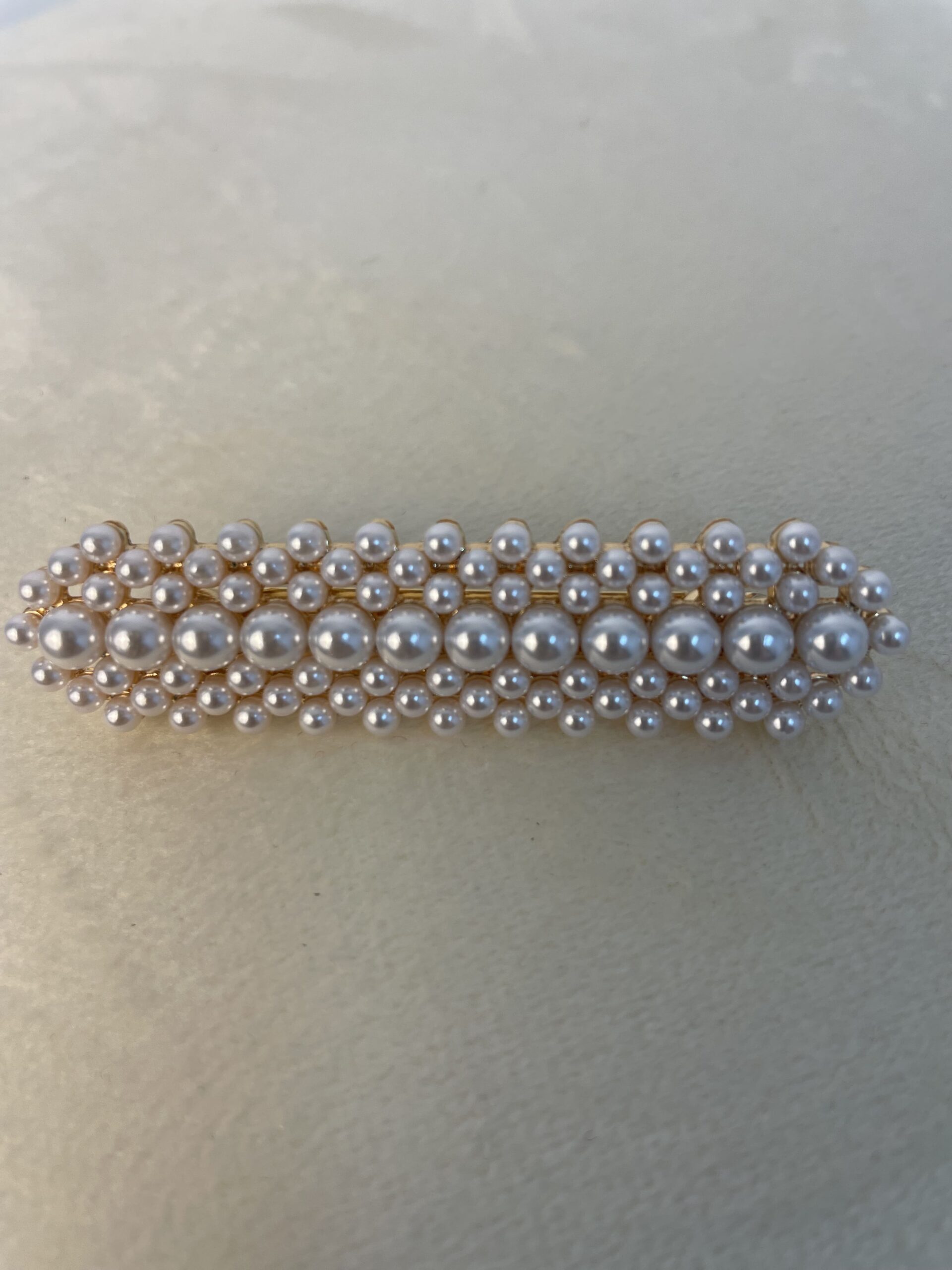 - Broche con bolitas de perlas en color Blanco fino y muy elegante.