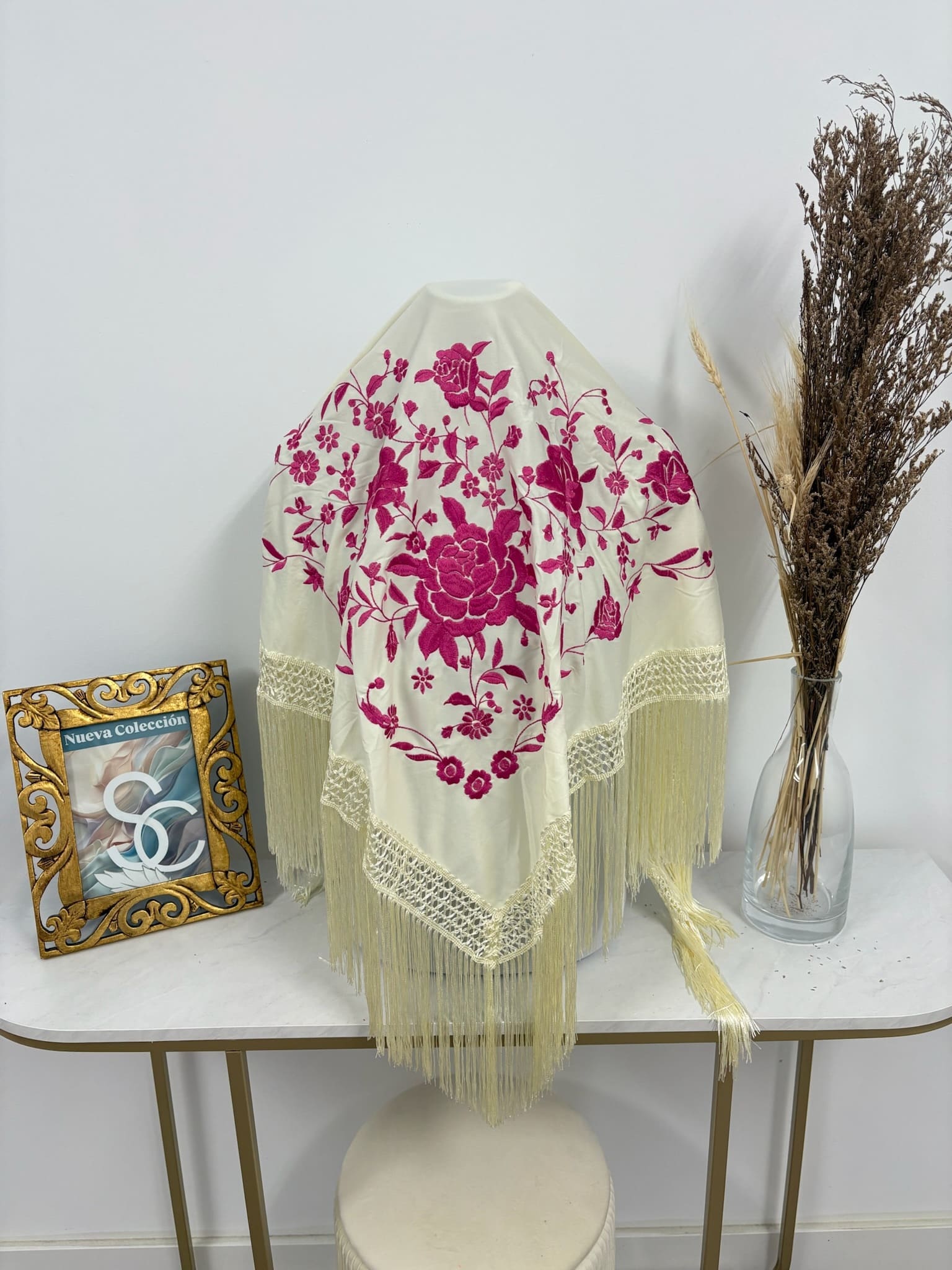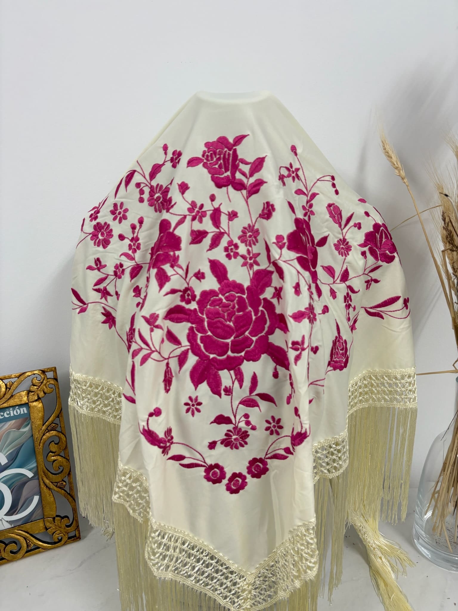 Mantoncillo 9,95 Beige con bordado en fucsia