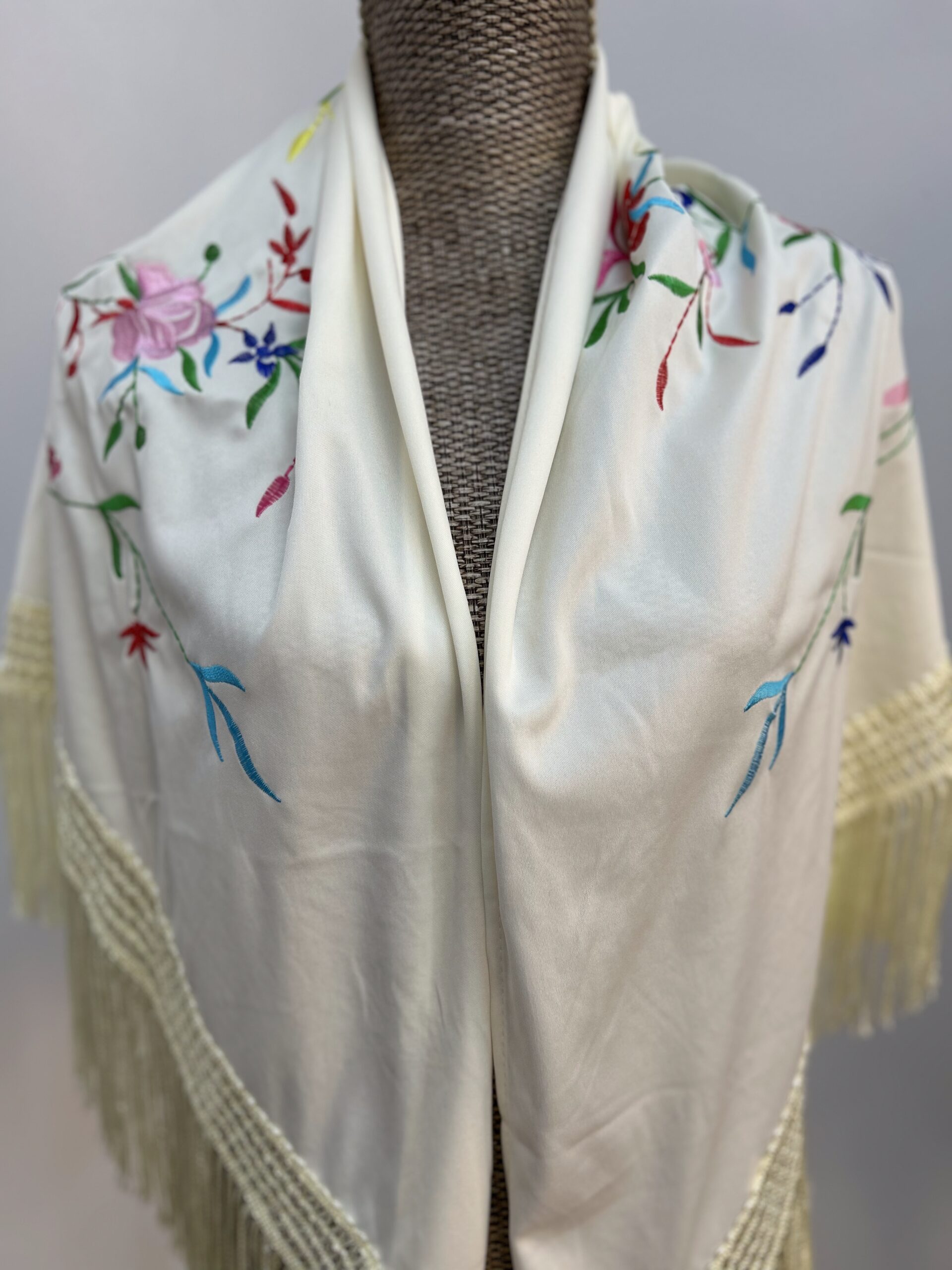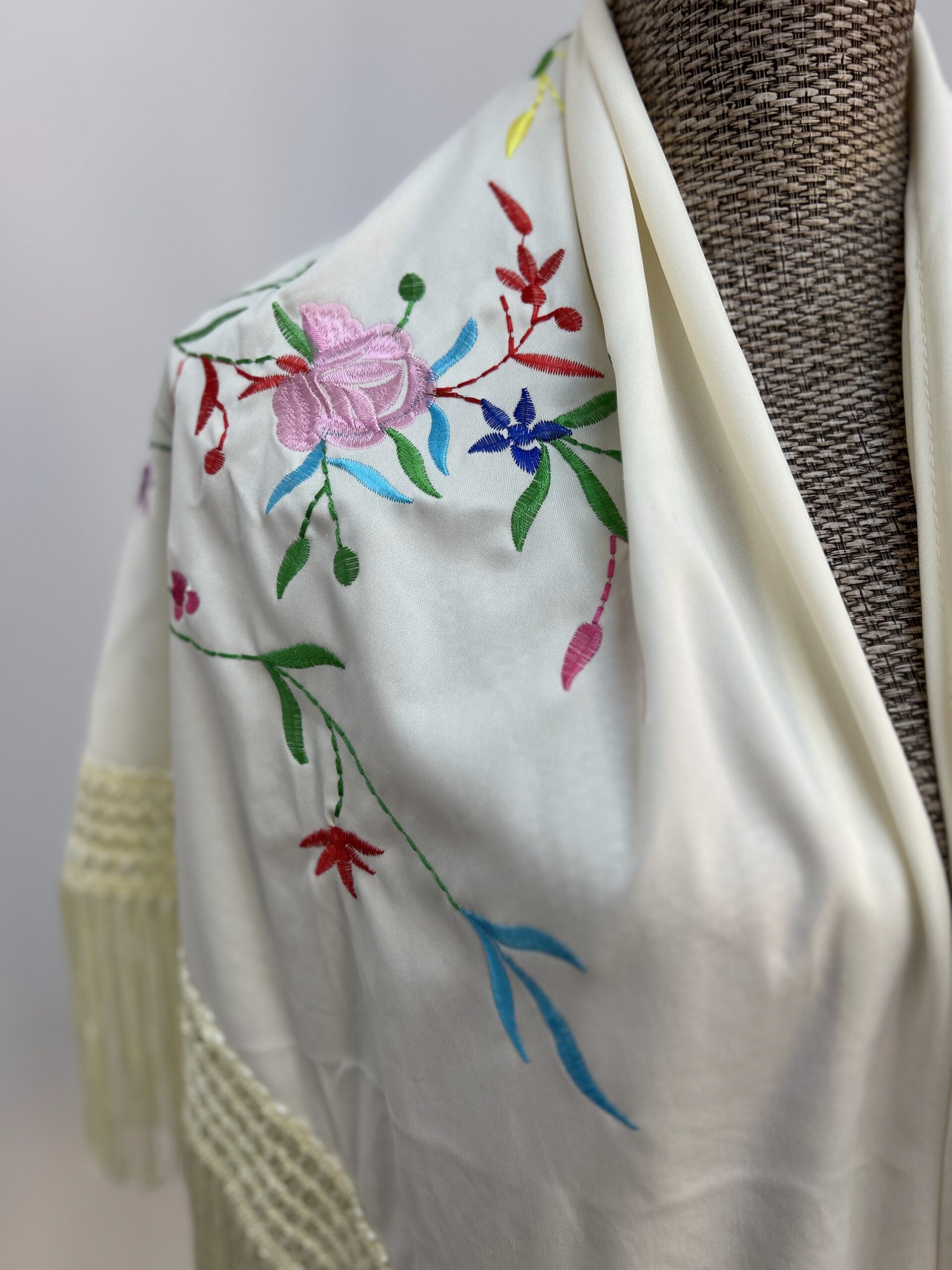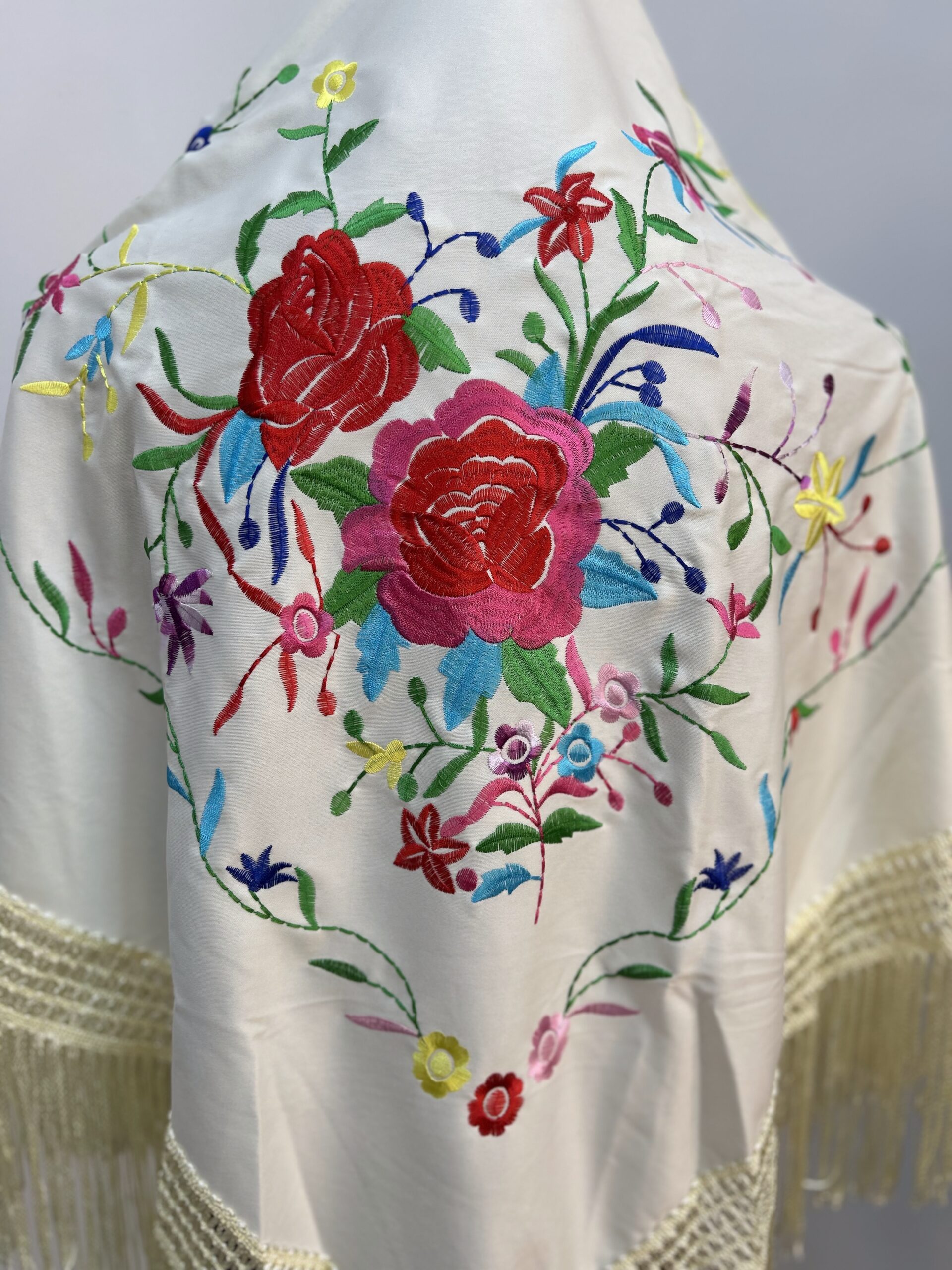 - Mantoncillo bordado color beige claro ,con dos rosas de colores .