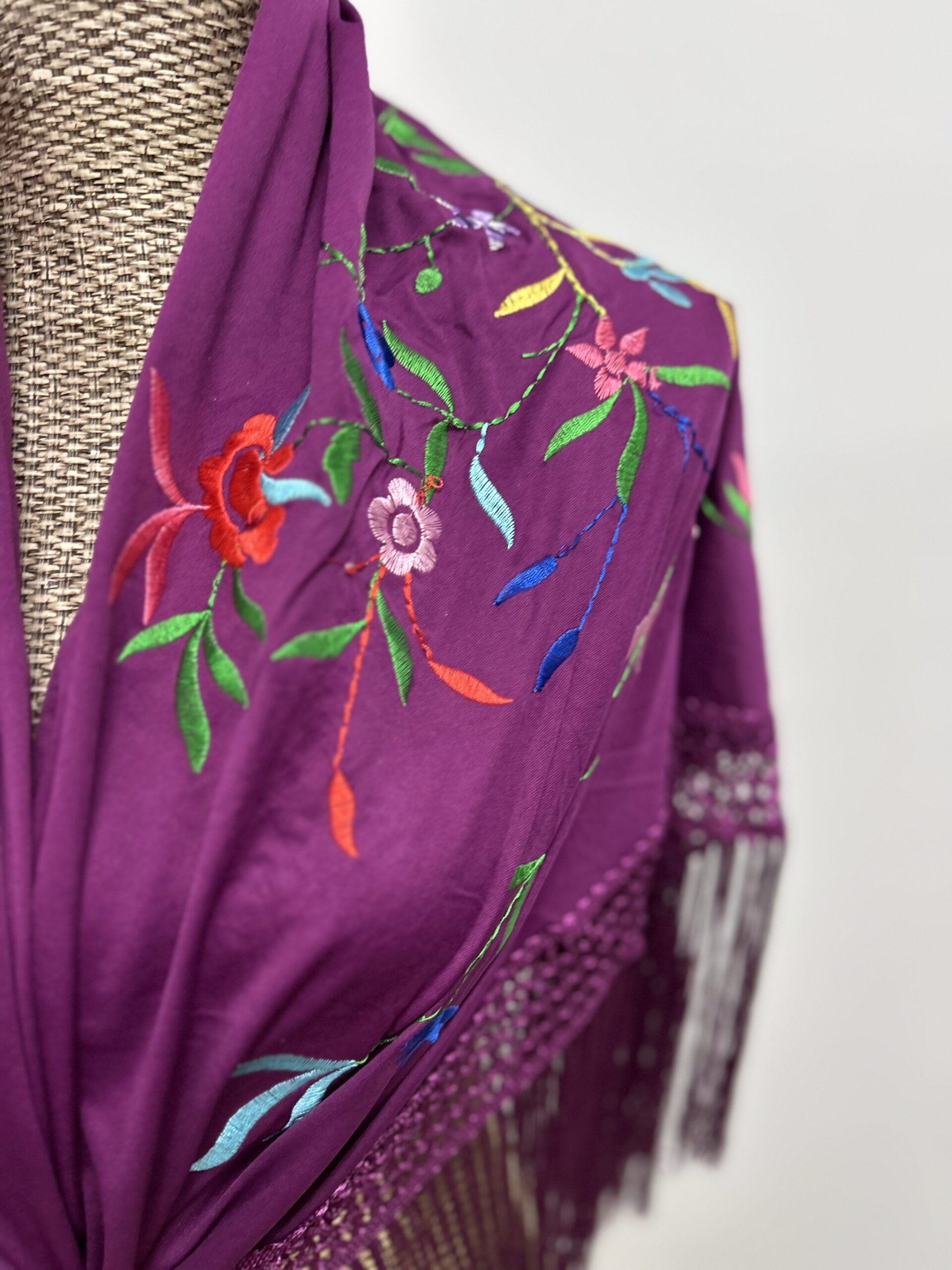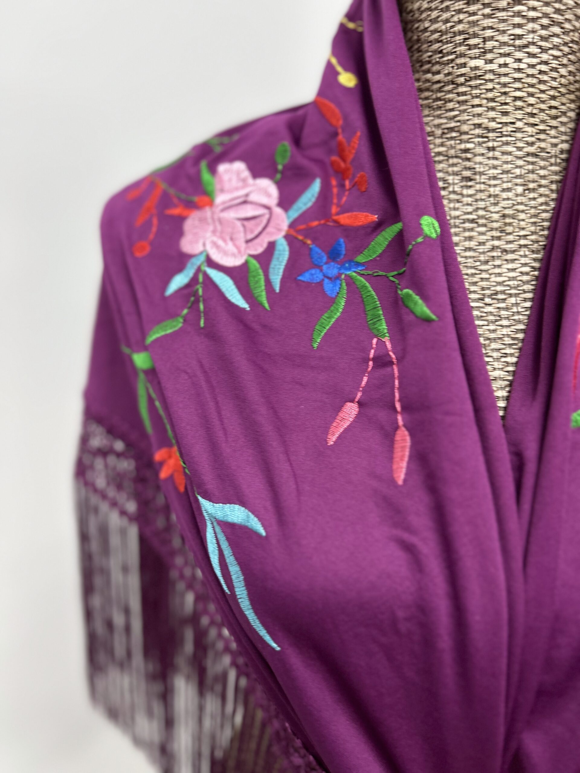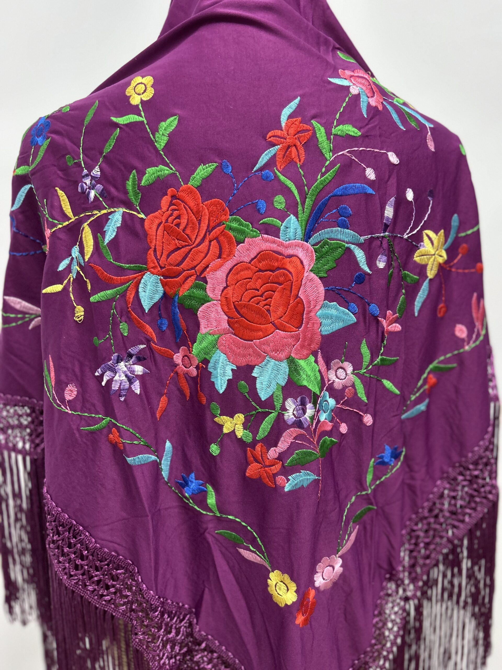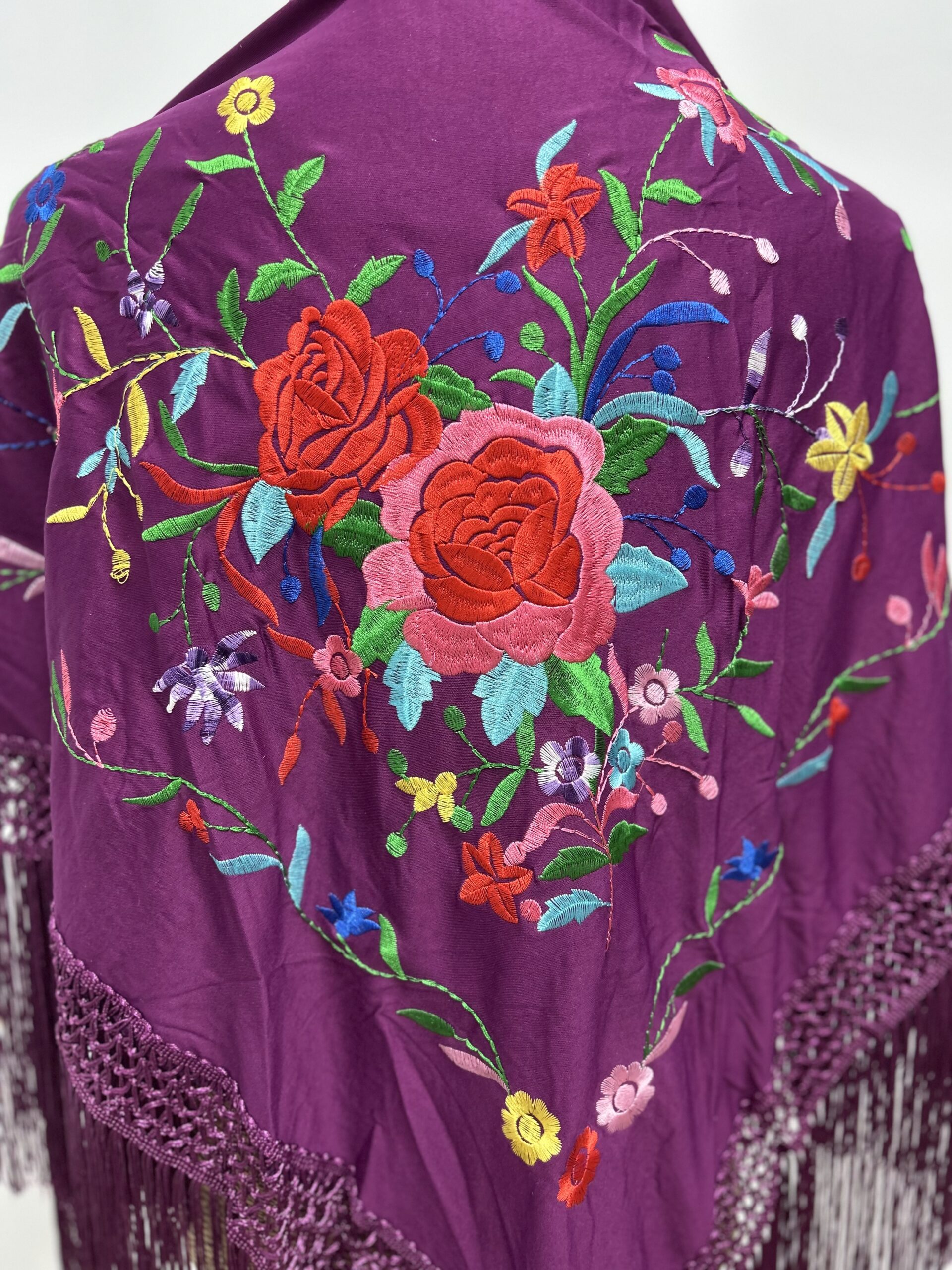 Mantoncillo Bordado Berenjena Flores De Colores dos Rosas