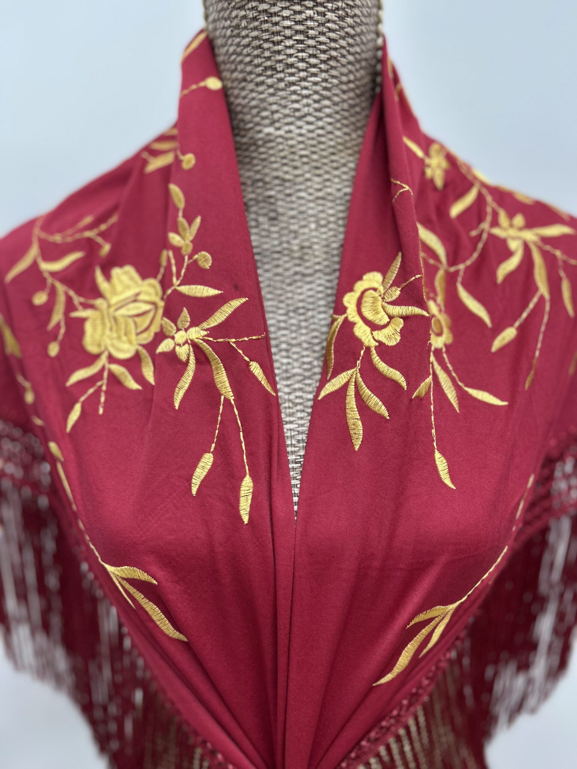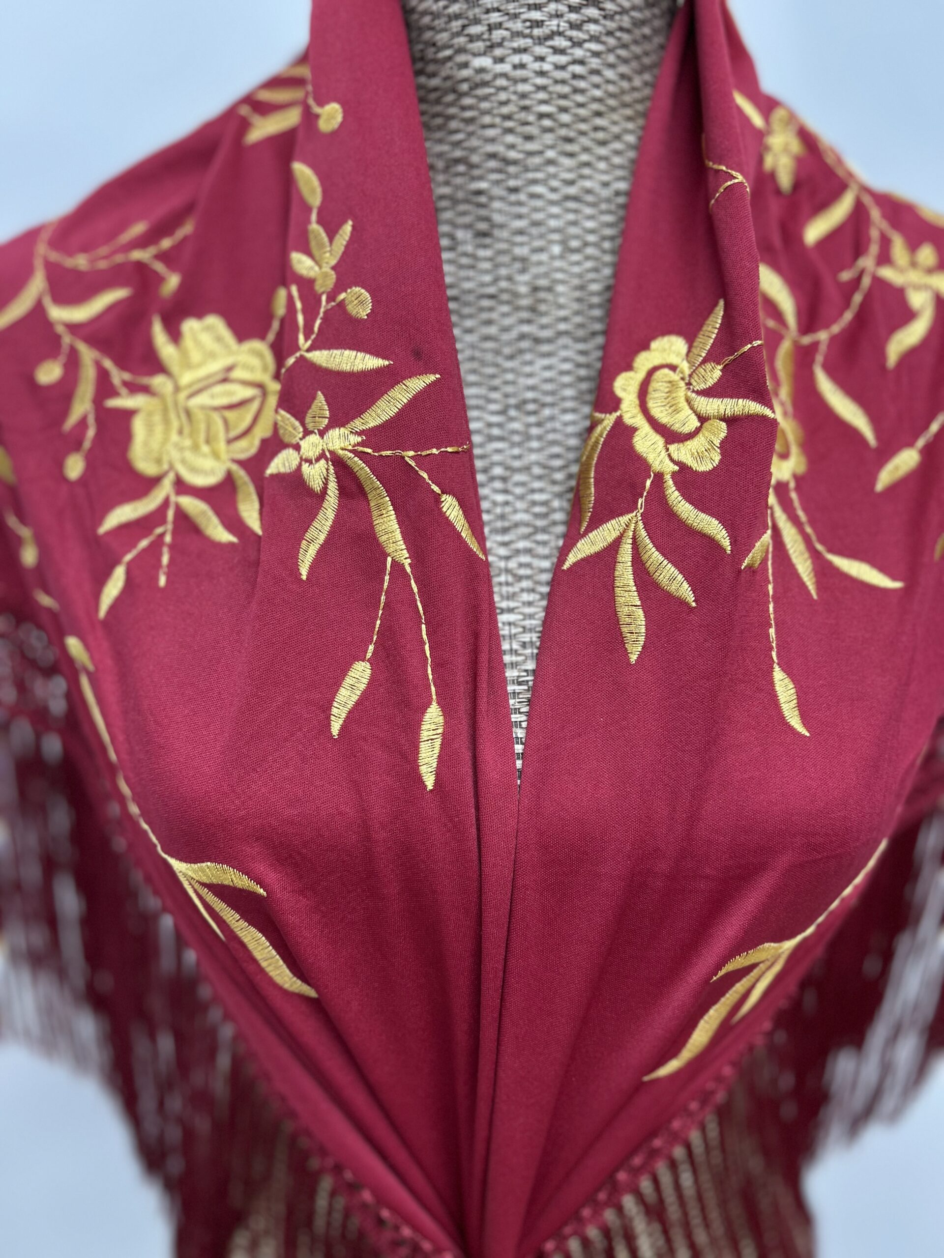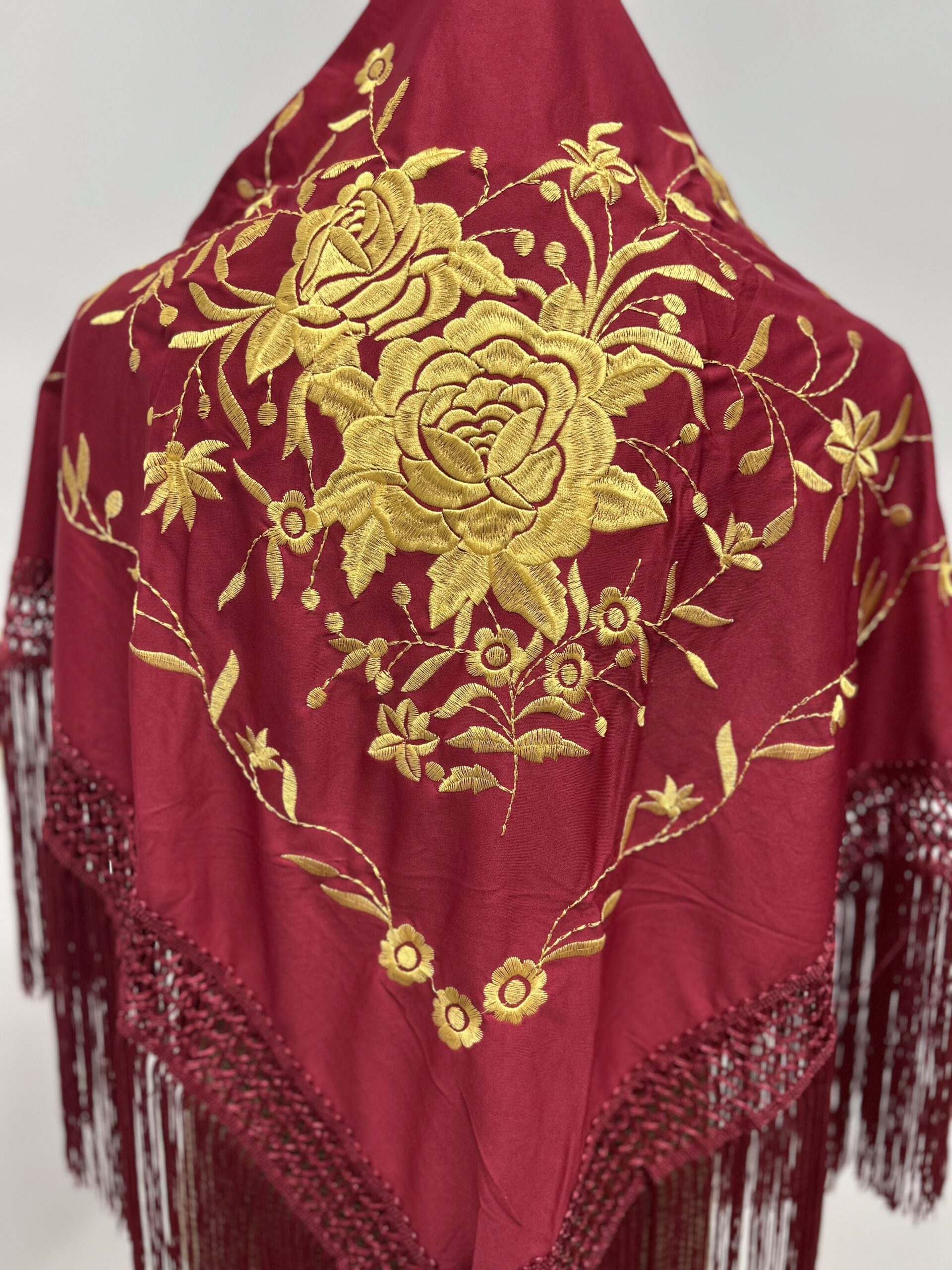 Mantoncillo Bordado Burdeos Con Dos Flores Doradas