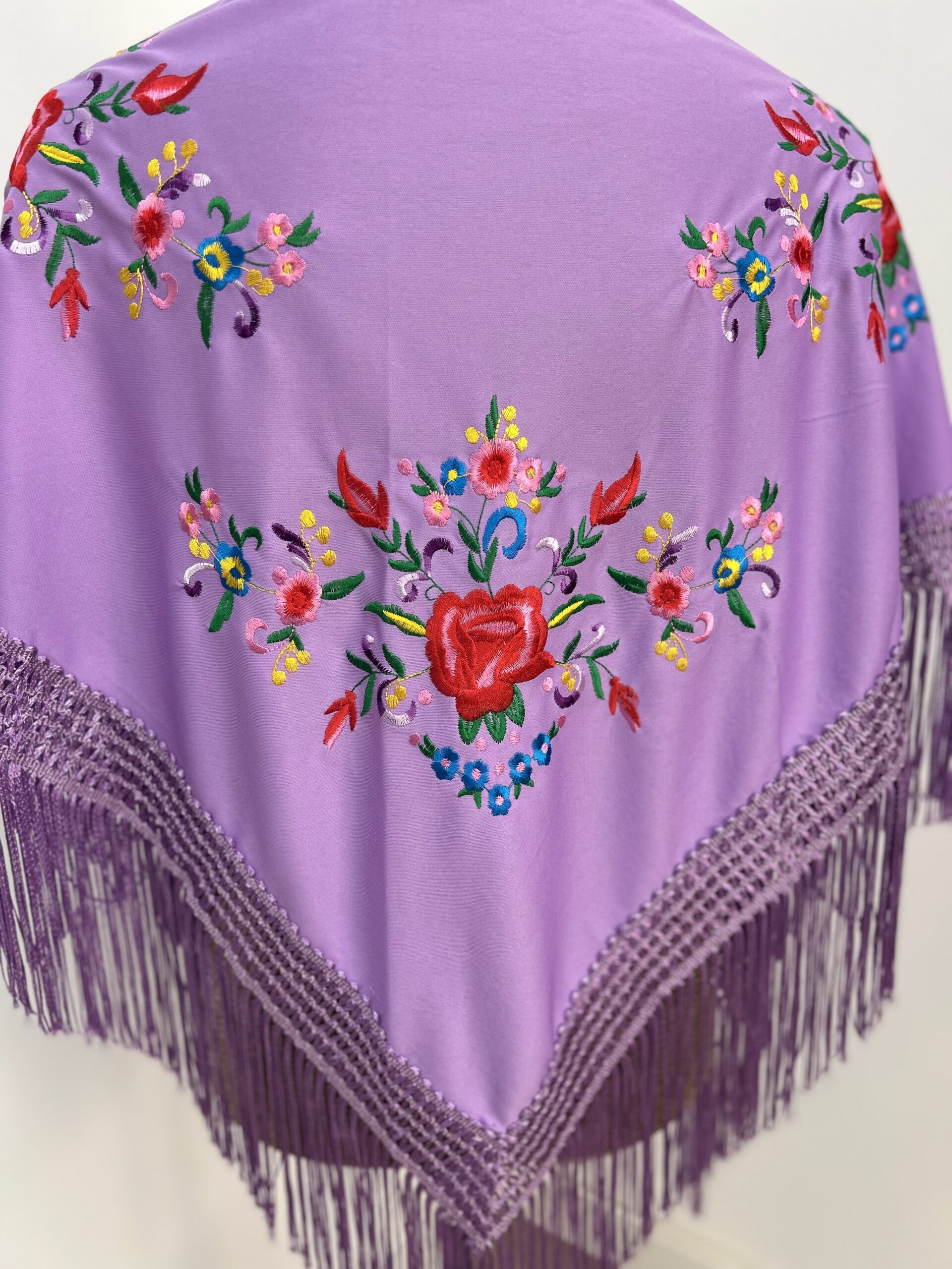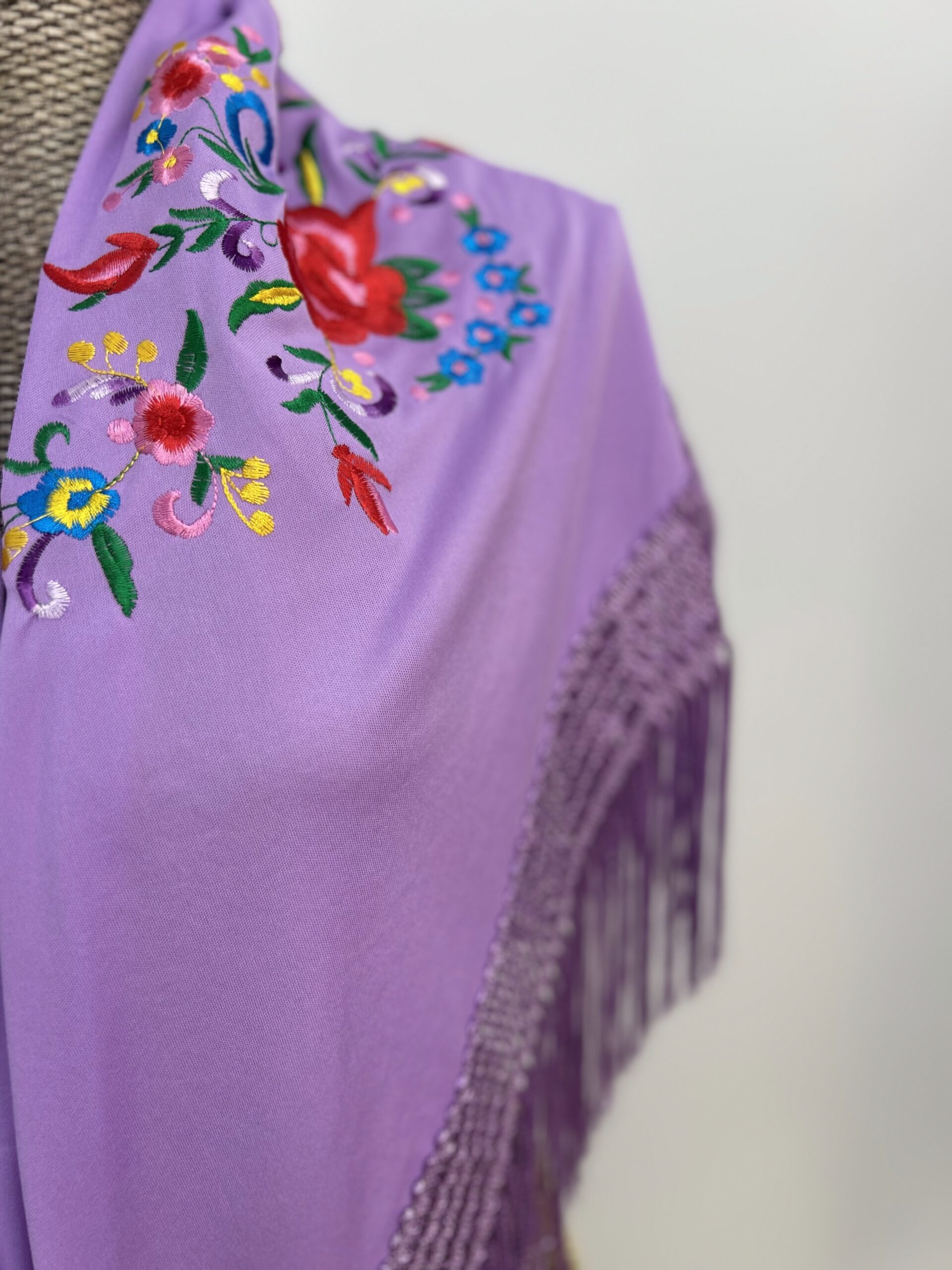 1. Mantoncillo bordado color malva clarito ,con  rosas de colores pequeñas .