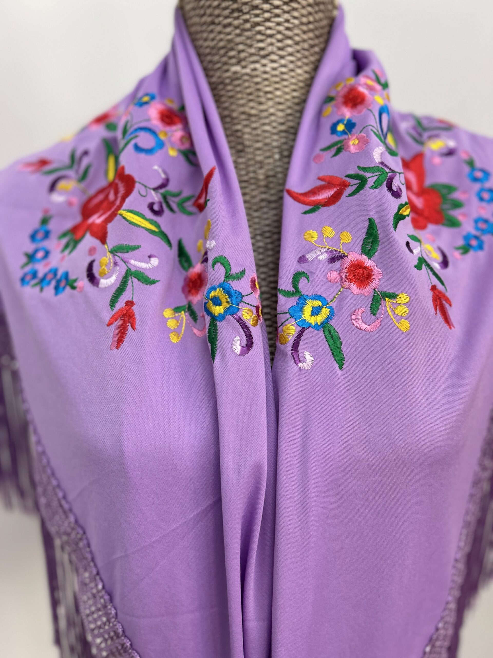 Sé el primero en valorar “Mantoncillo Bordado Malva Con Rosas  Pequeñas De Colores”