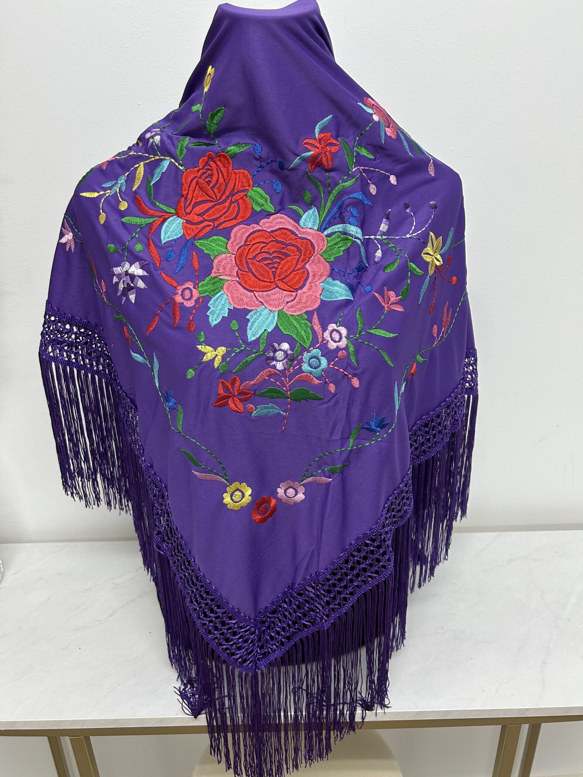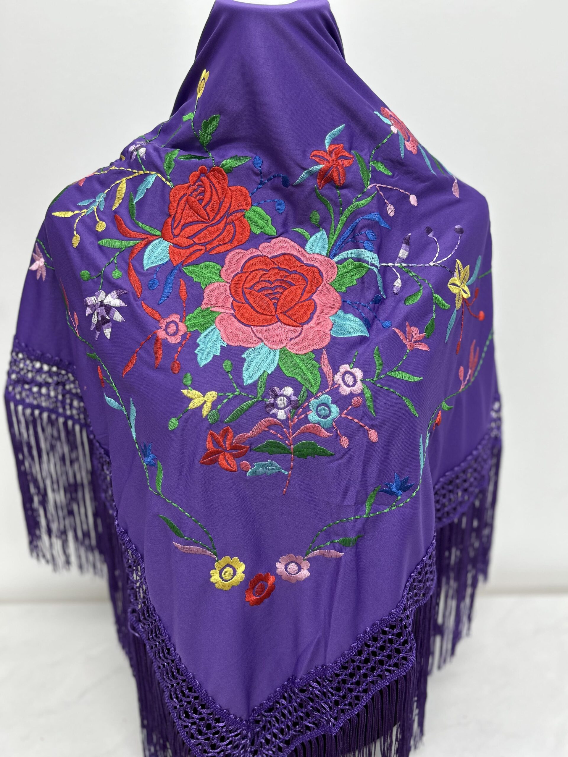 Mantoncillo Bordado Morado Dos Rosas Colores