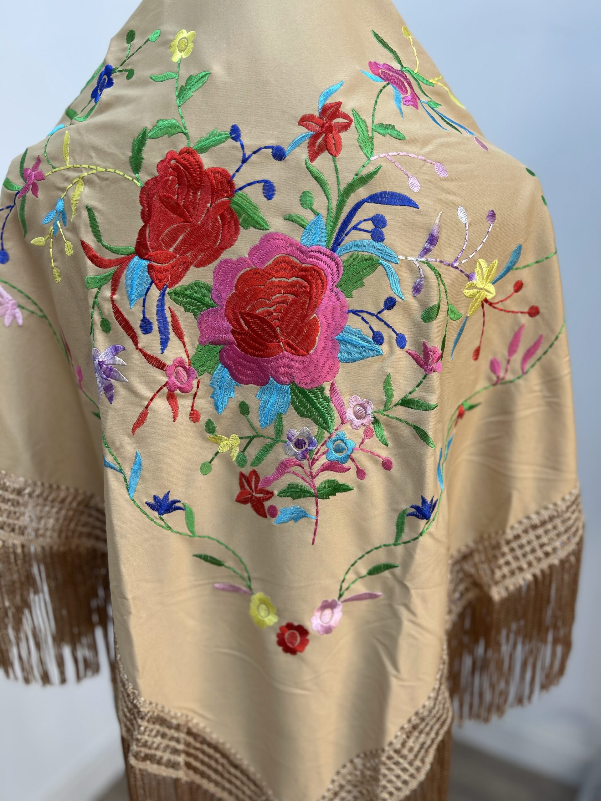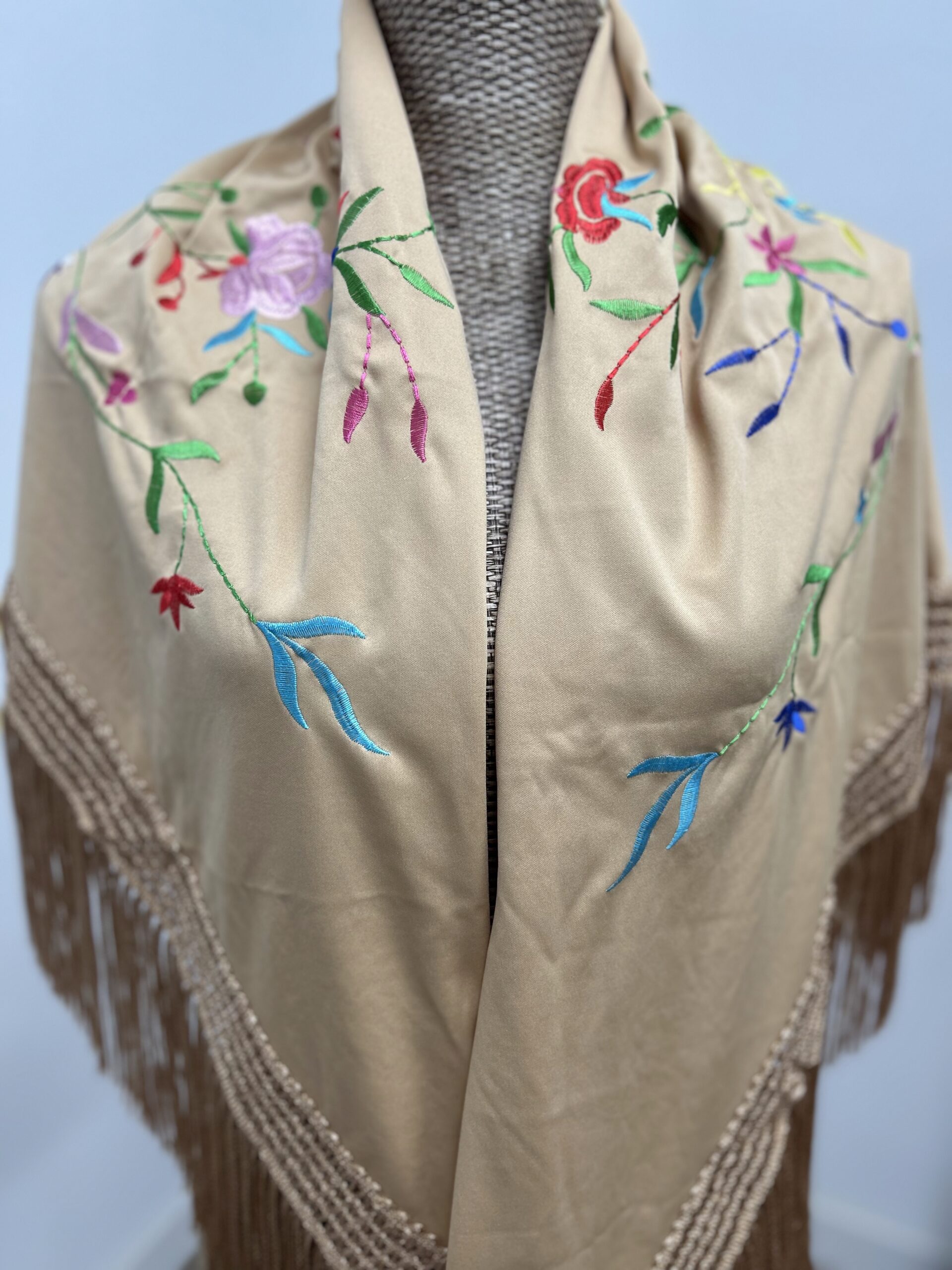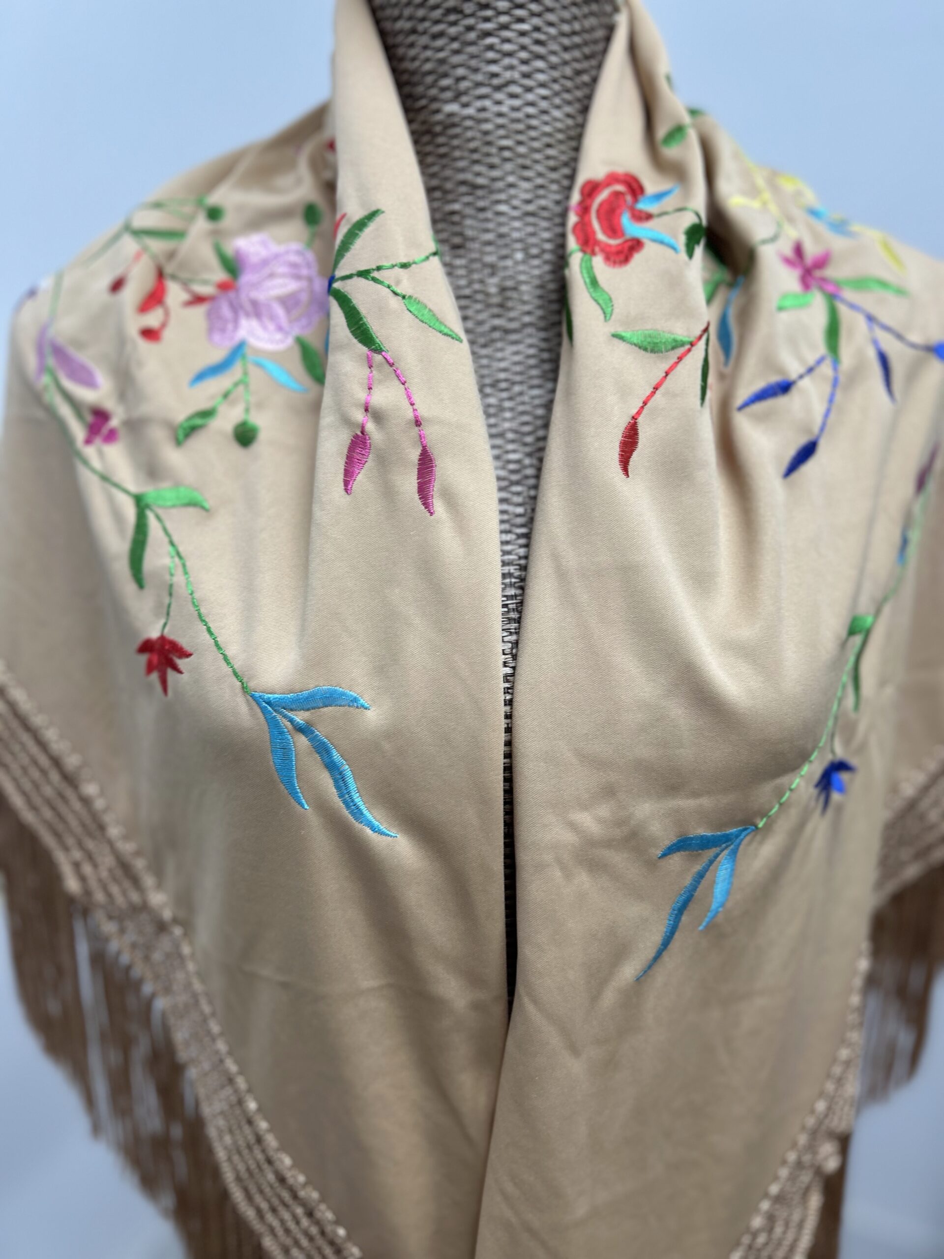 Mantoncillo Bordado Tostado Con Flores De Colores Oscuro