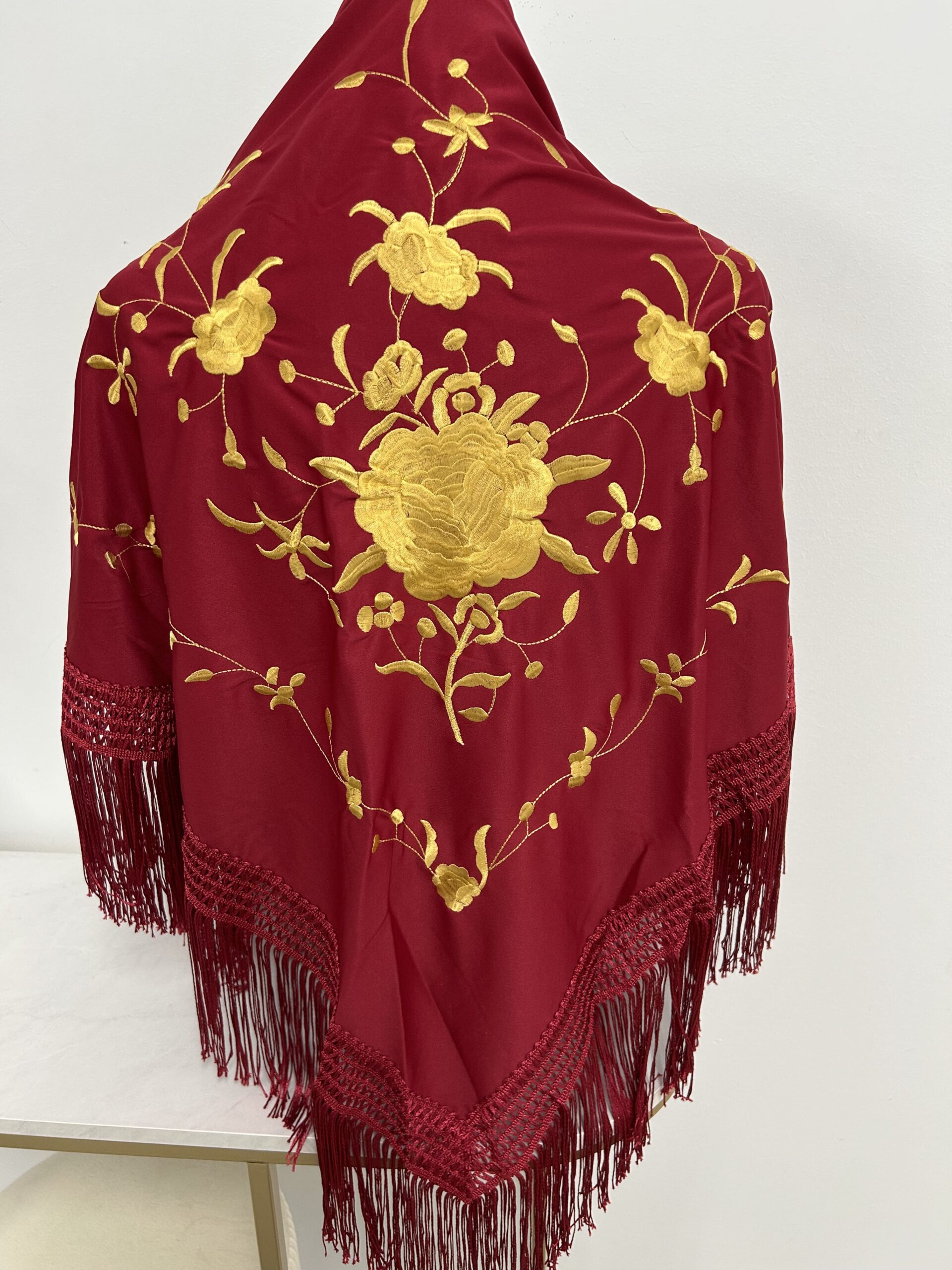 Mantoncillo Burdeos con Rosas Doradas