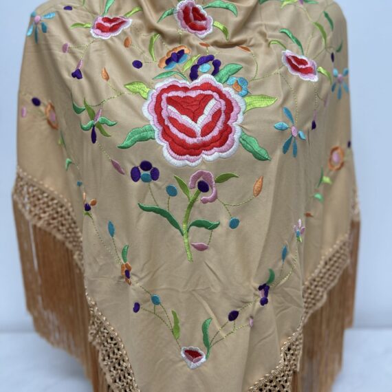 - Mantón en color Negro con flores en color Doradas.