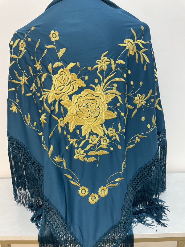 - Mantón en color Azul Petróleo ,bordado en color dorado.