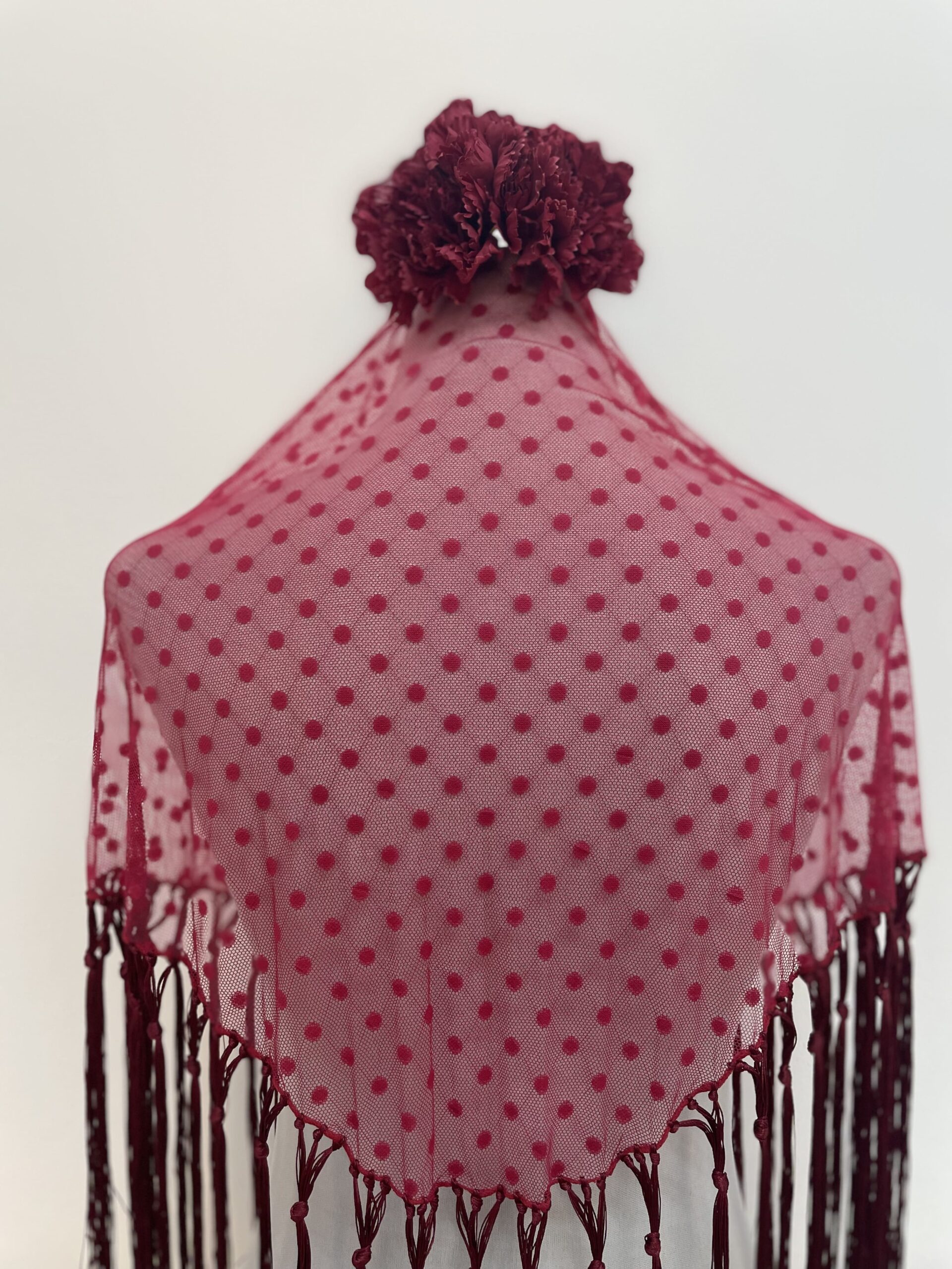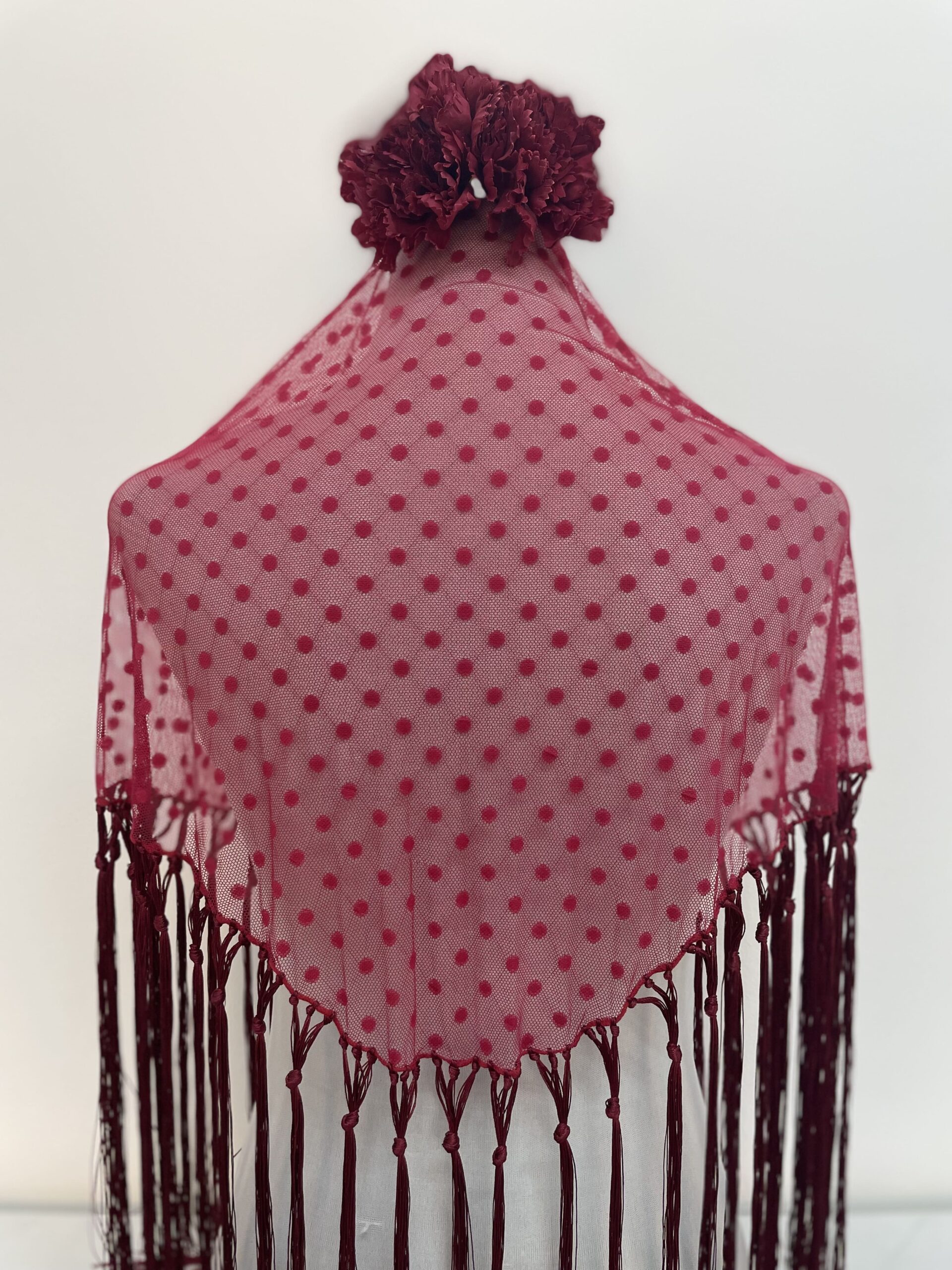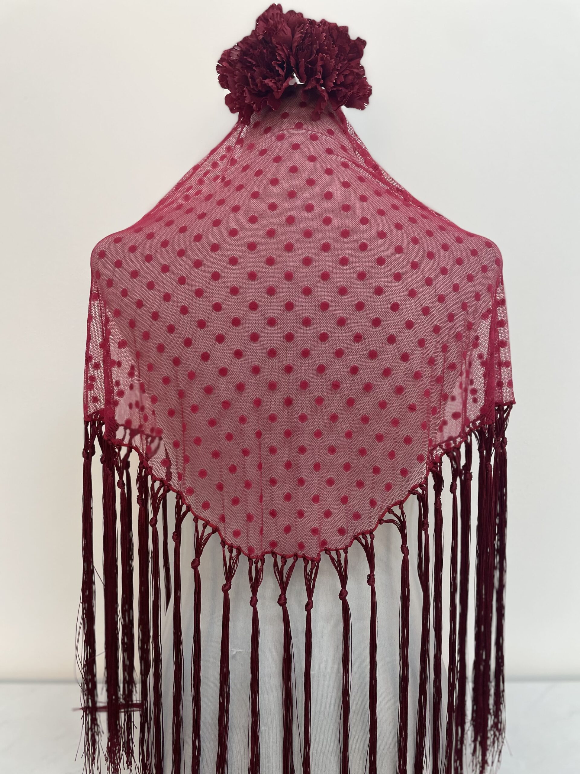 - Mantoncillo en tela de plumeti con el fleco en el mismo color.