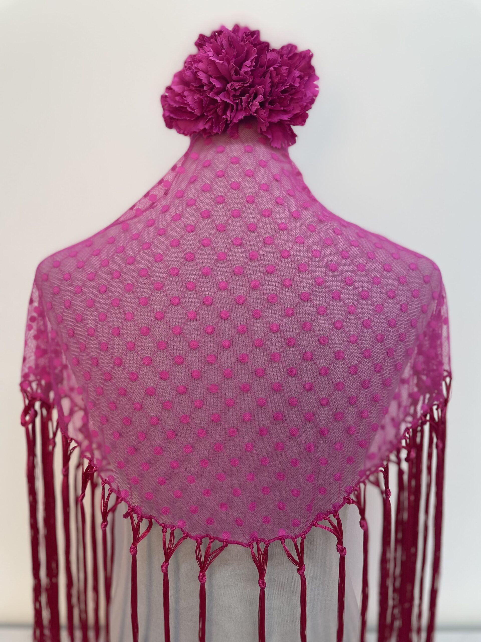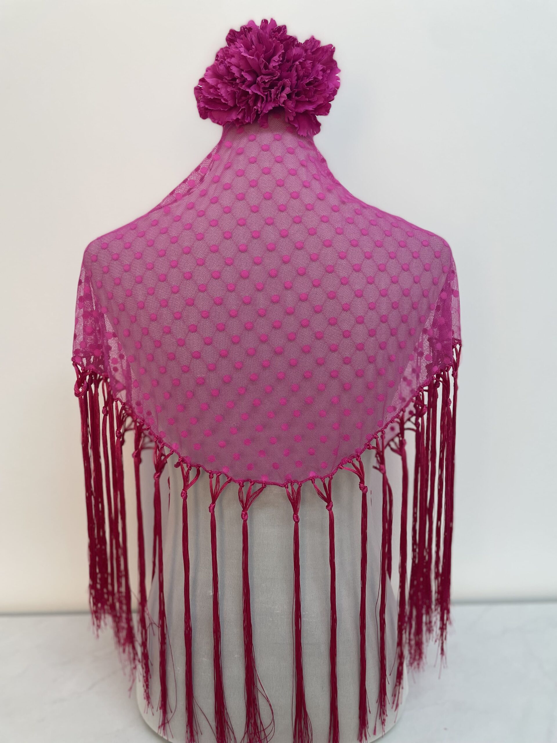 - Mantoncillo en tela de plumeti con el fleco en el mismo color.