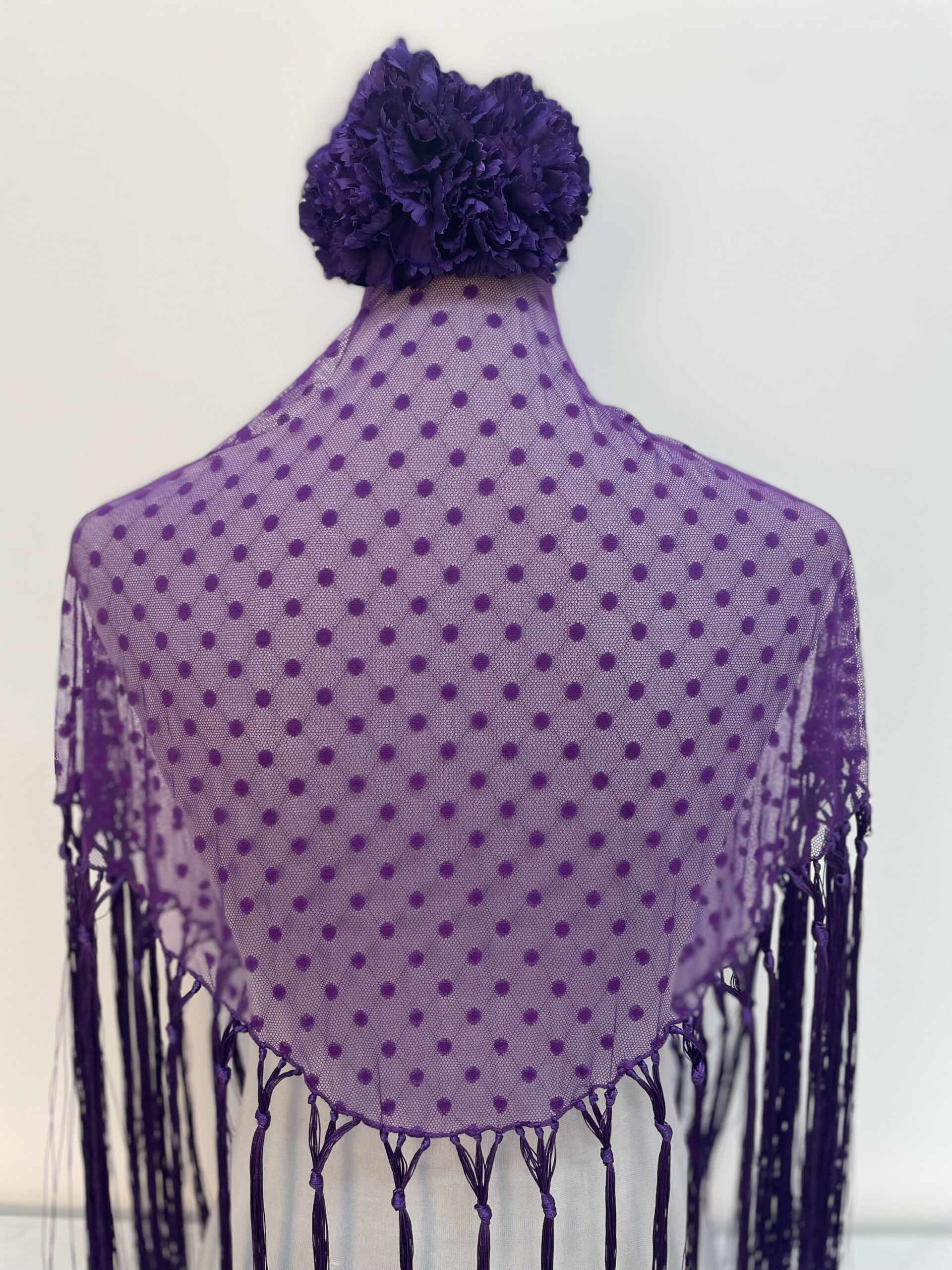 - Mantoncillo en tela de plumeti con el fleco en el mismo color.