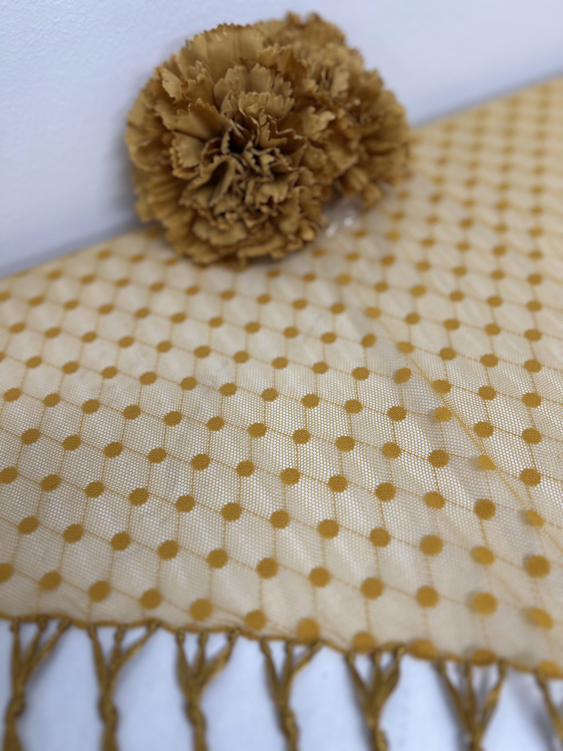 1. Mantoncillo en tela de plumeti con el fleco en el mismo color.