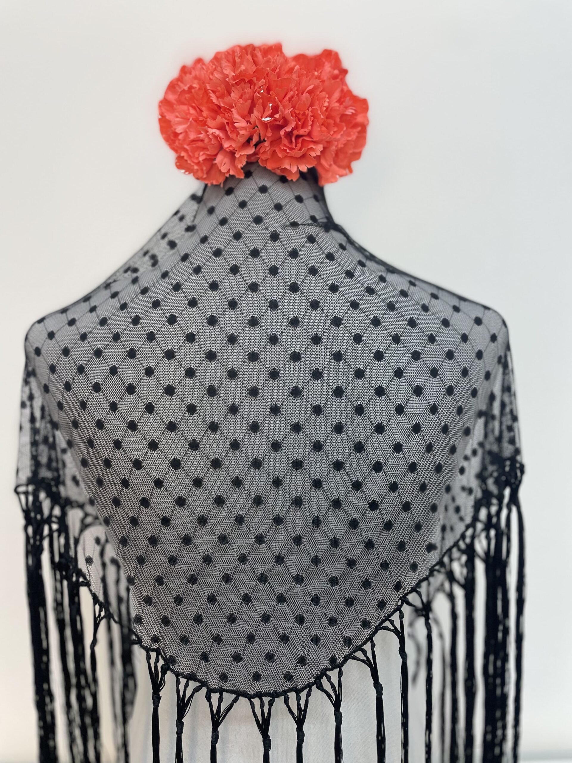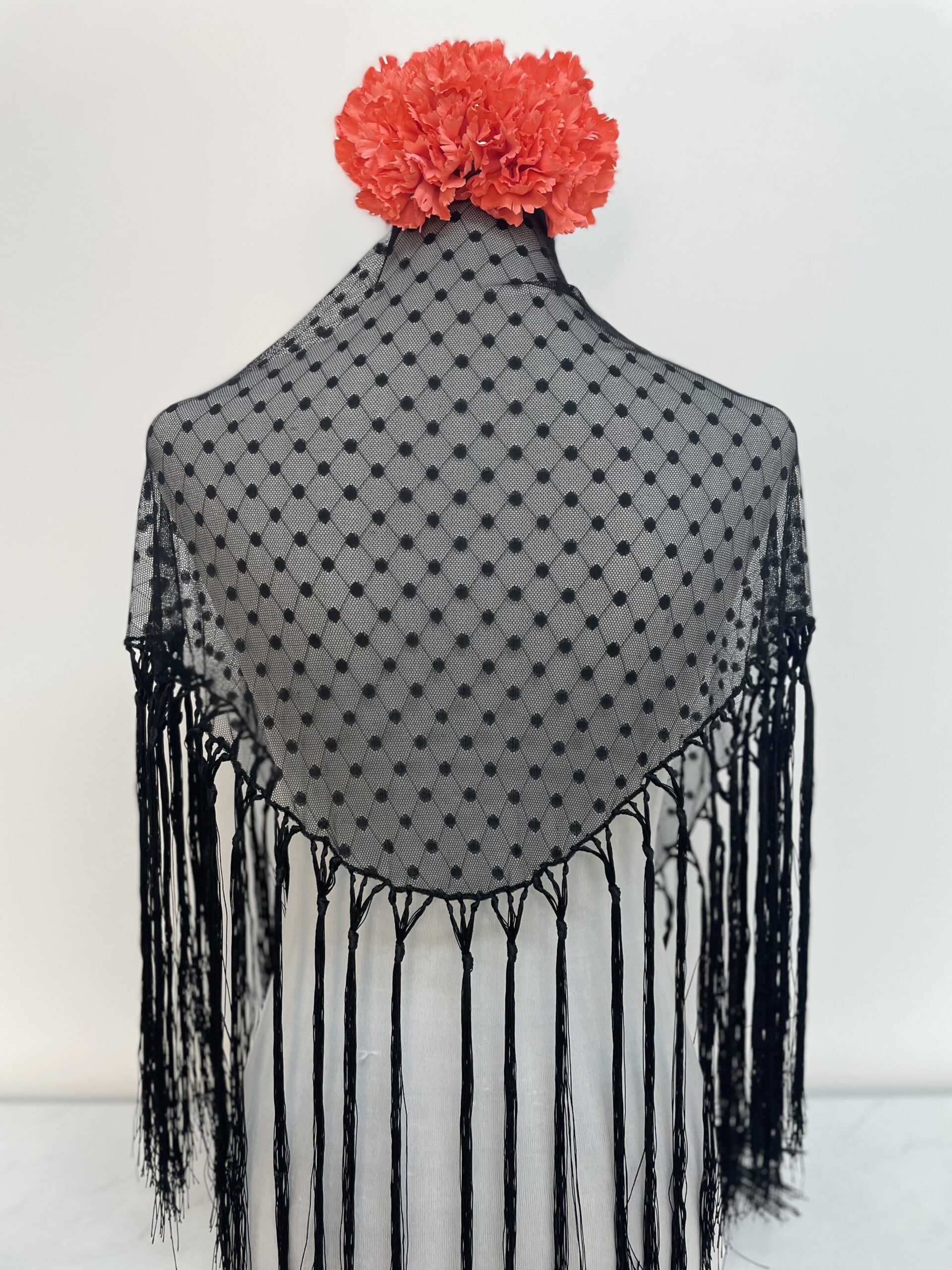 - Mantoncillo en tela de plumeti con el fleco en el mismo color.