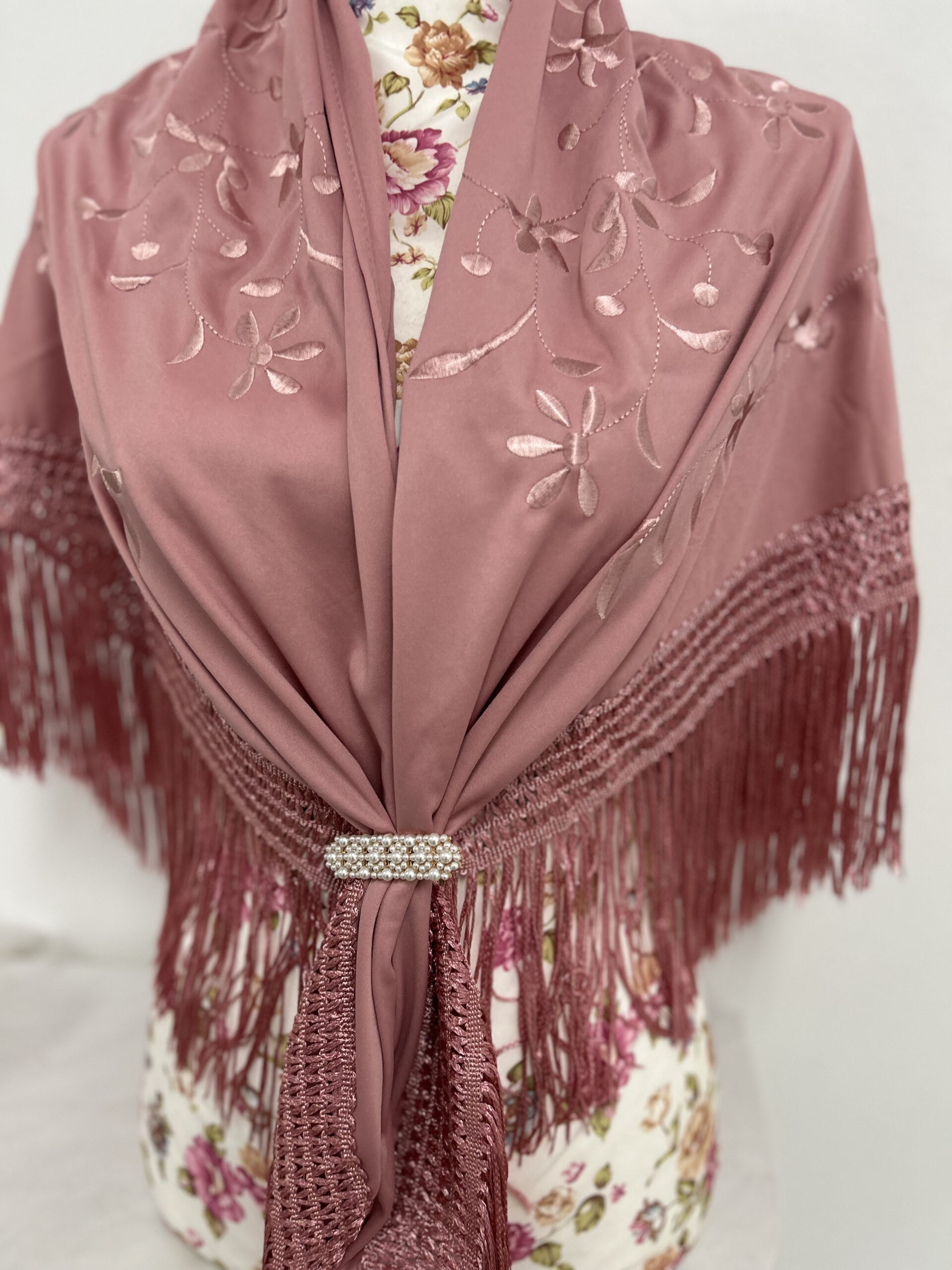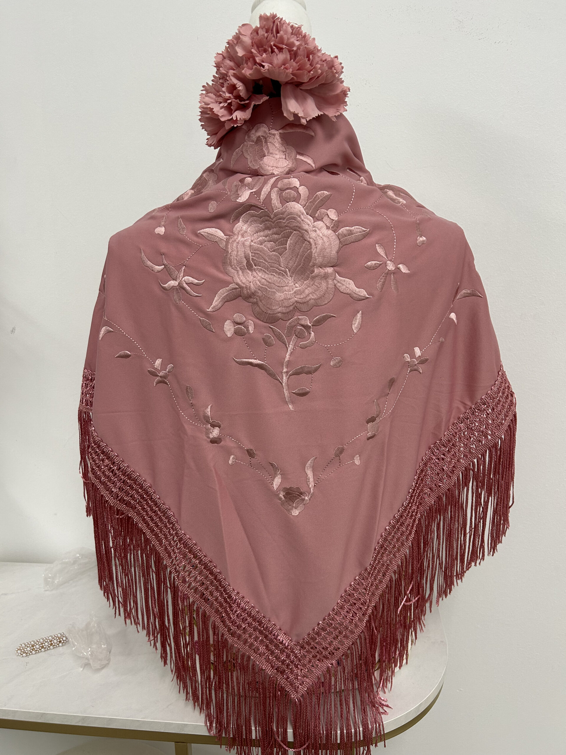 - Tejido de Crespón de Color Rosa empolvado del mismo Tono.
