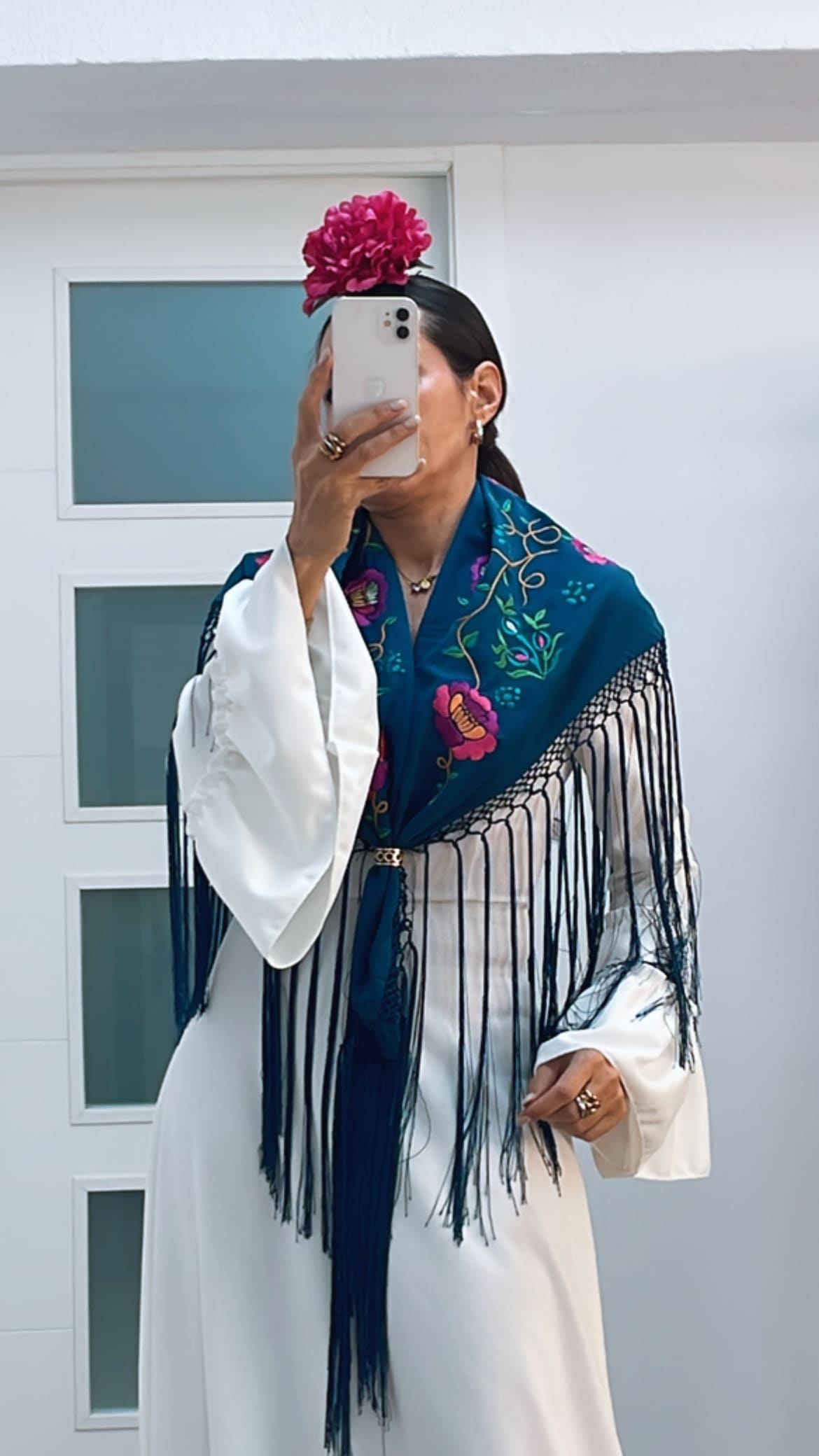 - Mantoncillo de crespón 100% viscosa bordado.