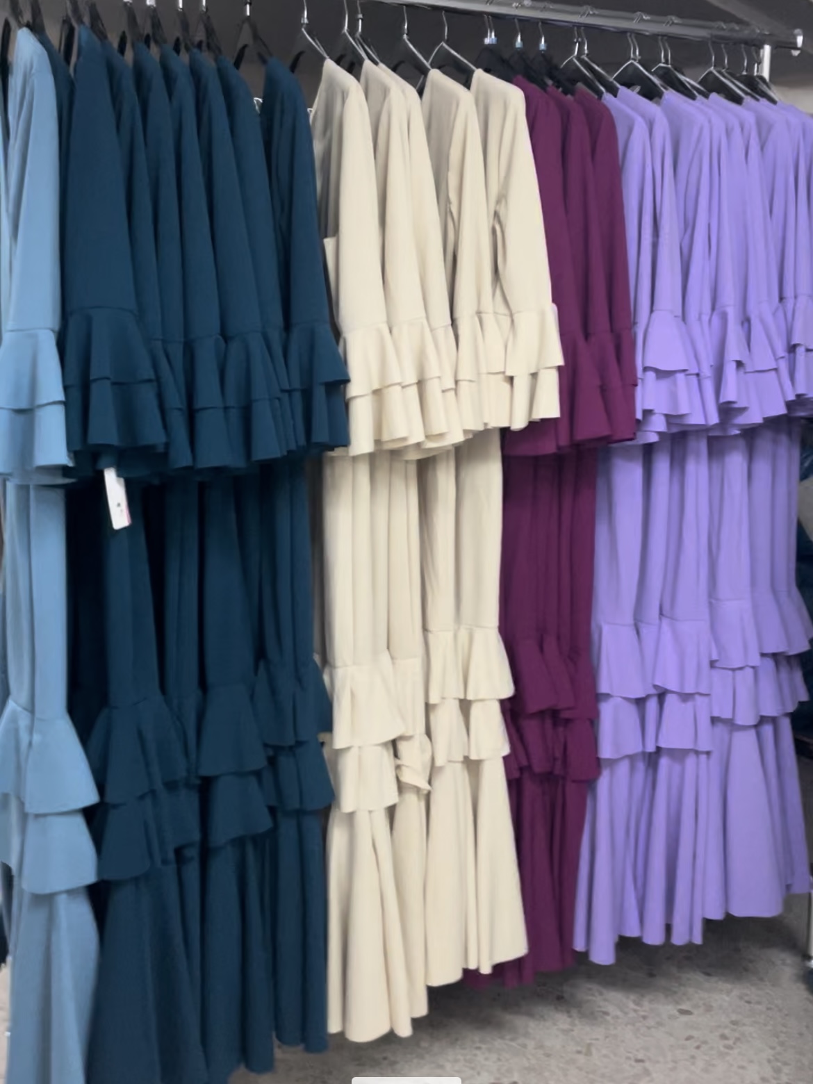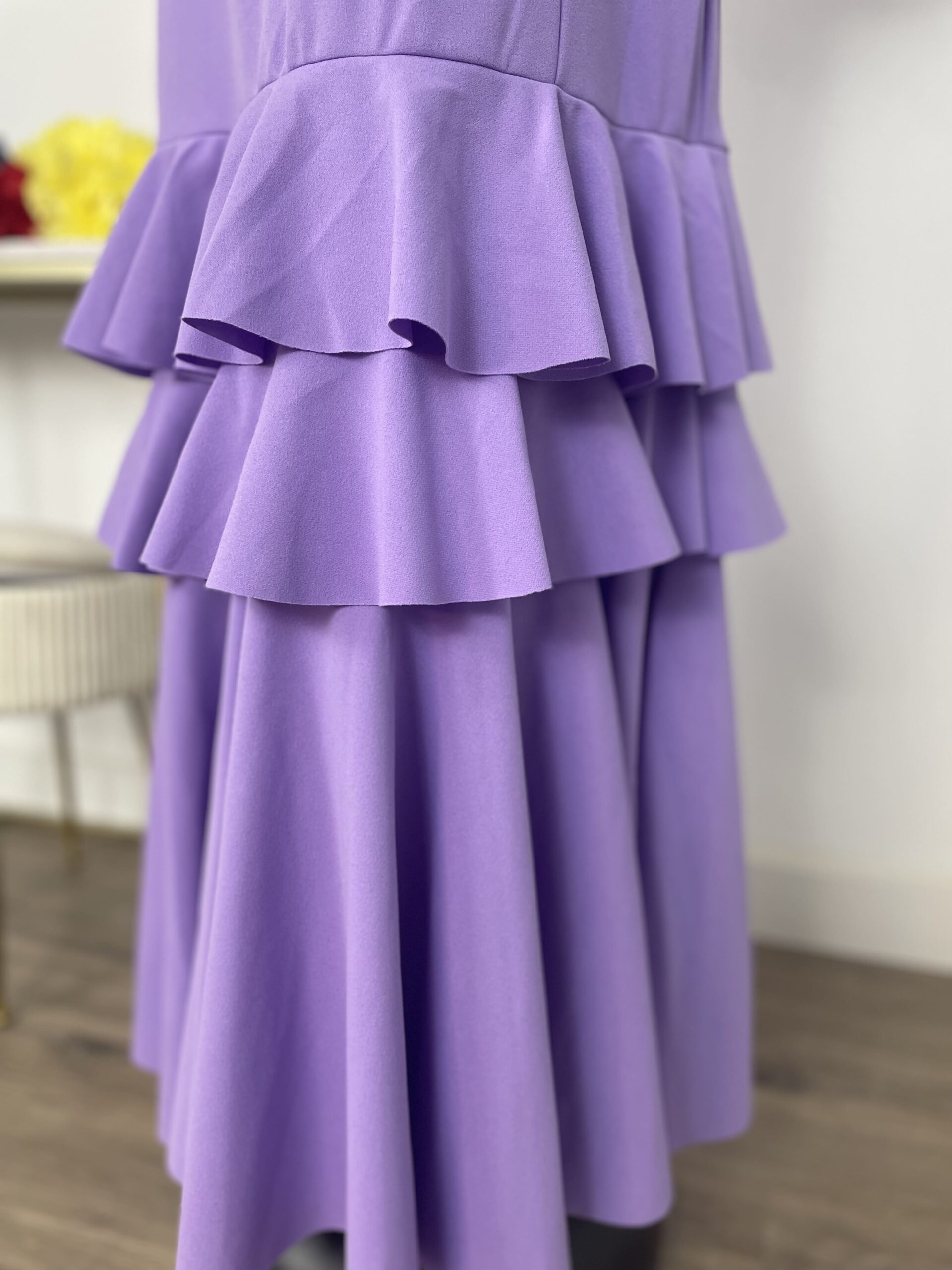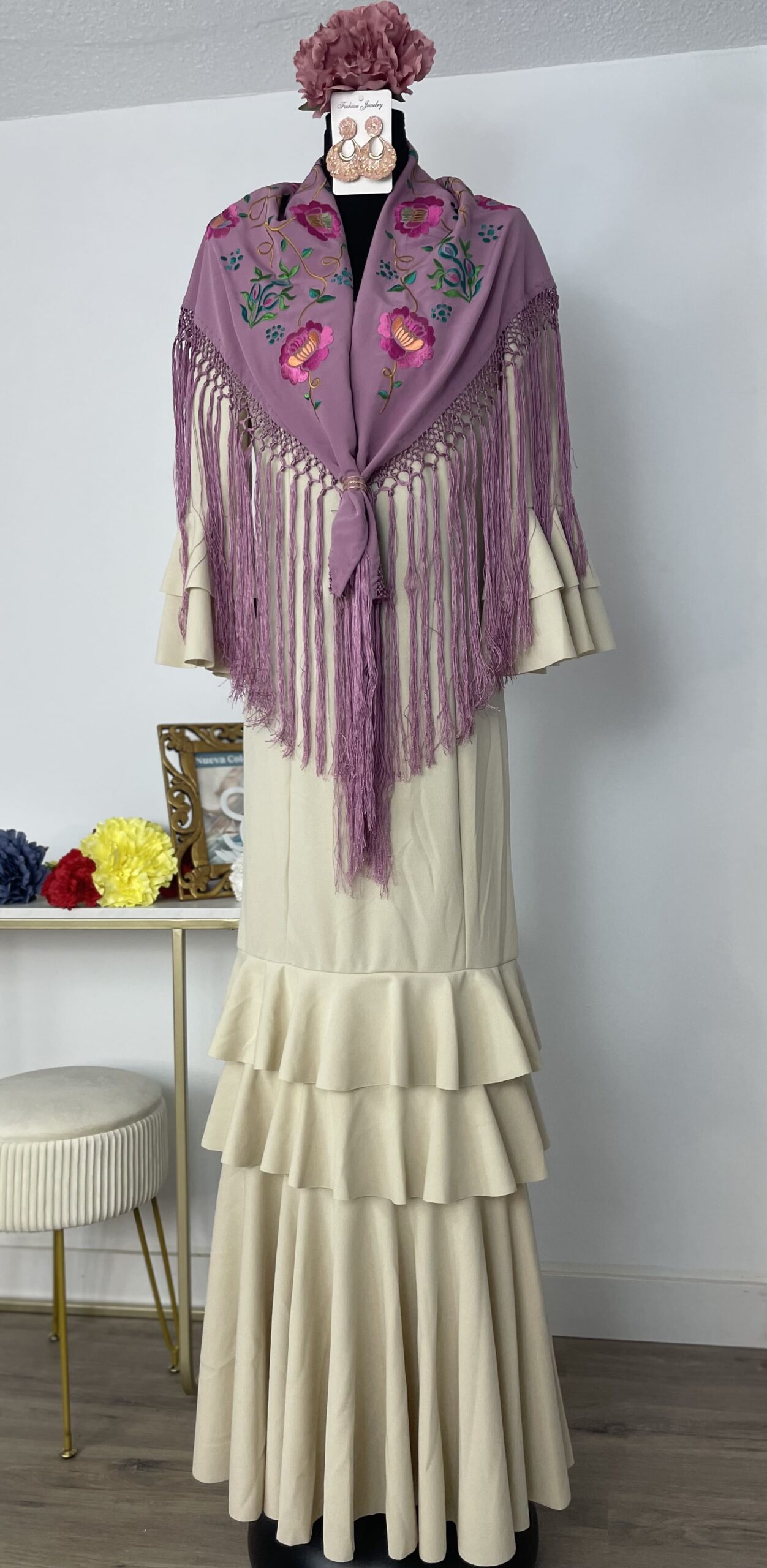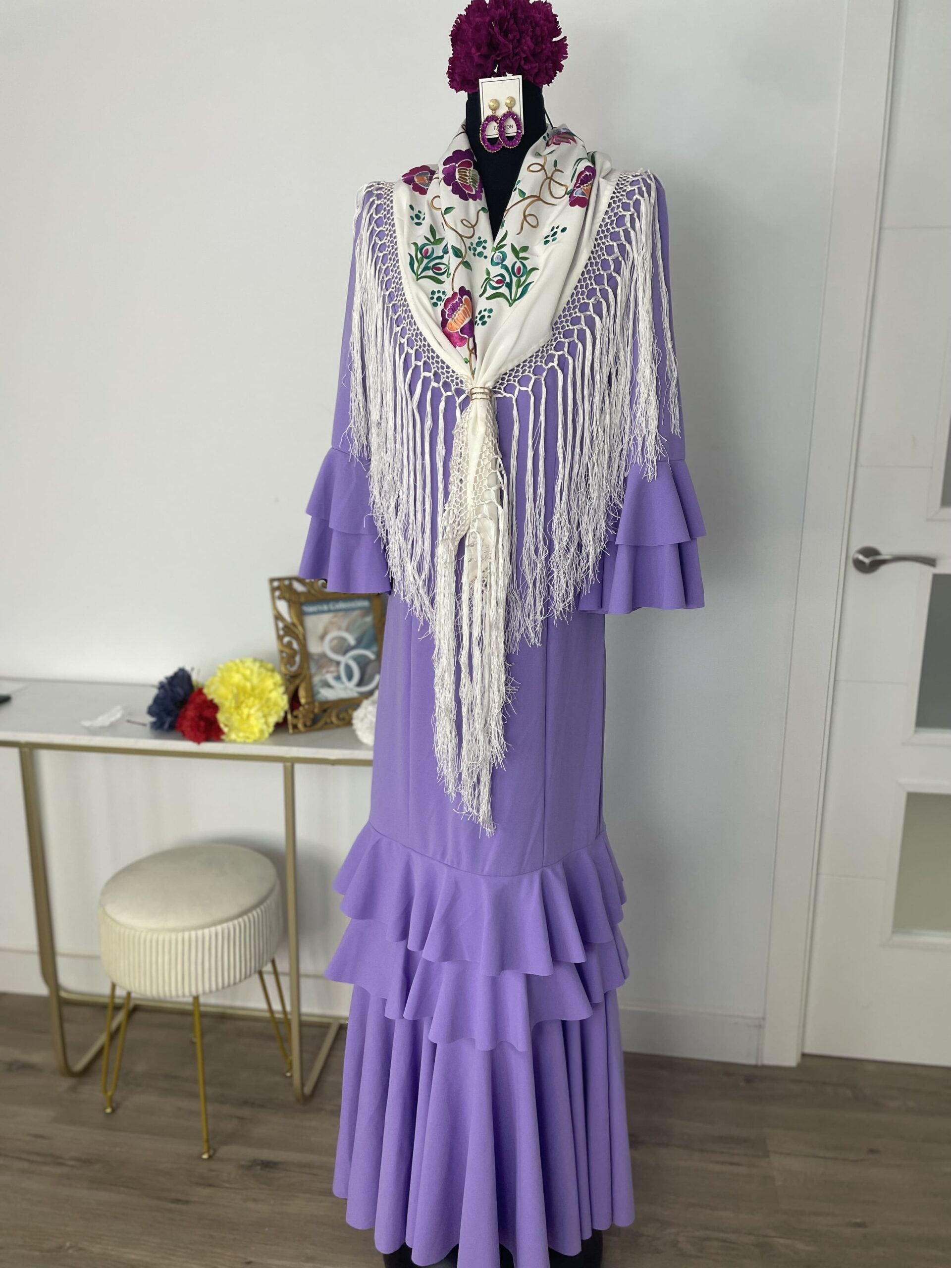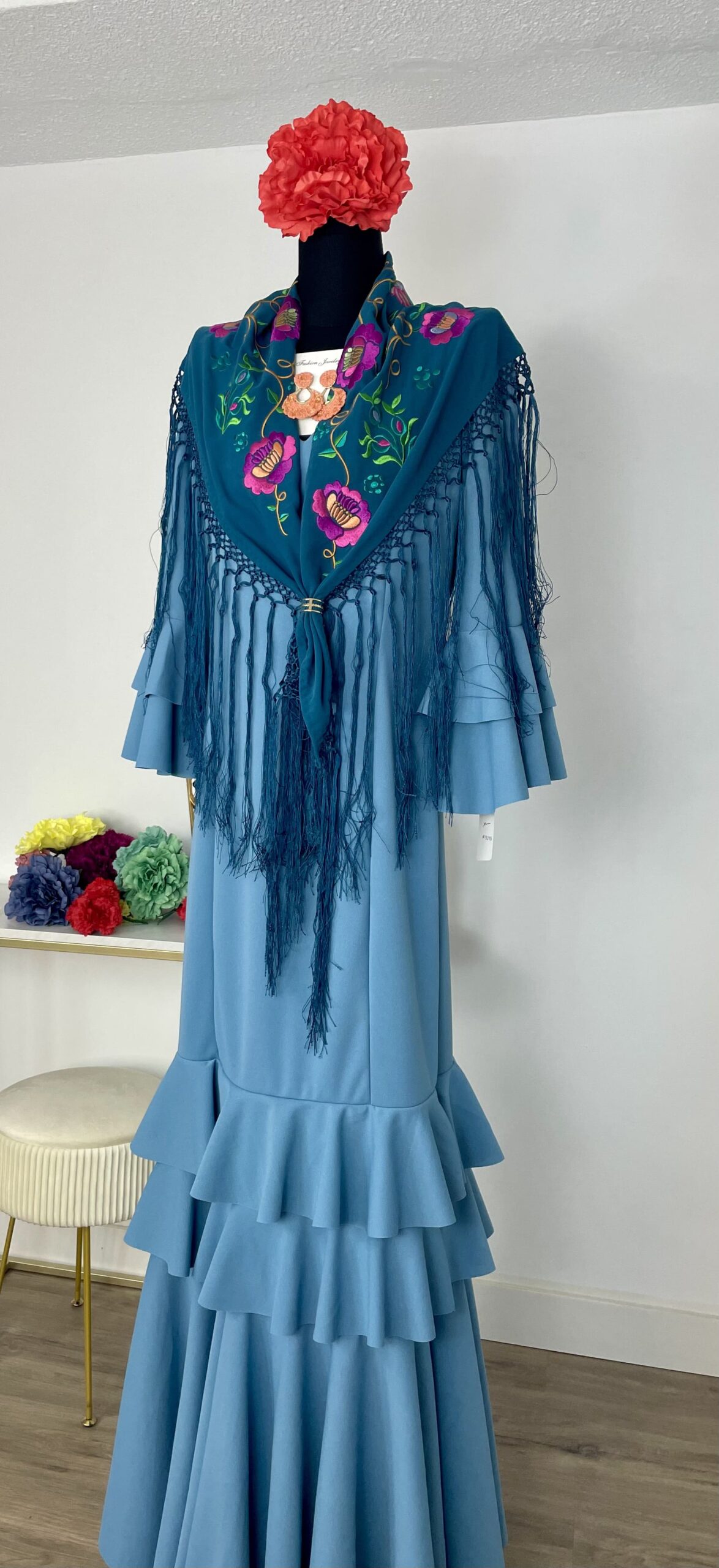 - Tejido de crepé elástico ,muy parecido al Modelo Rocío, la diferencia ,los volantes son dos pequeños y uno largo.