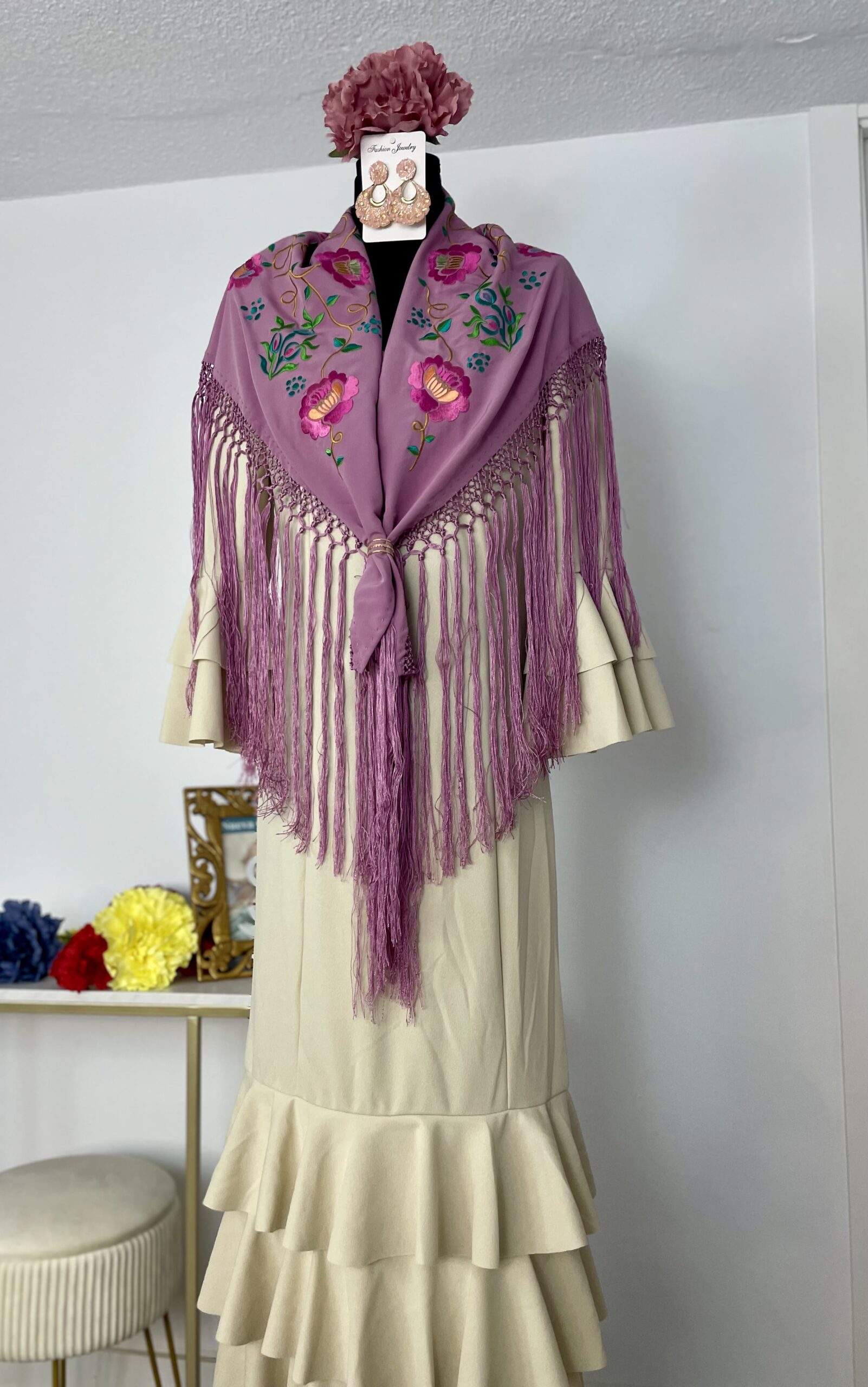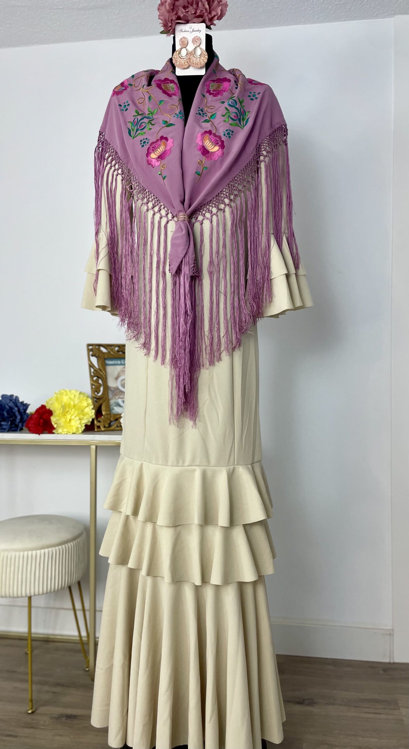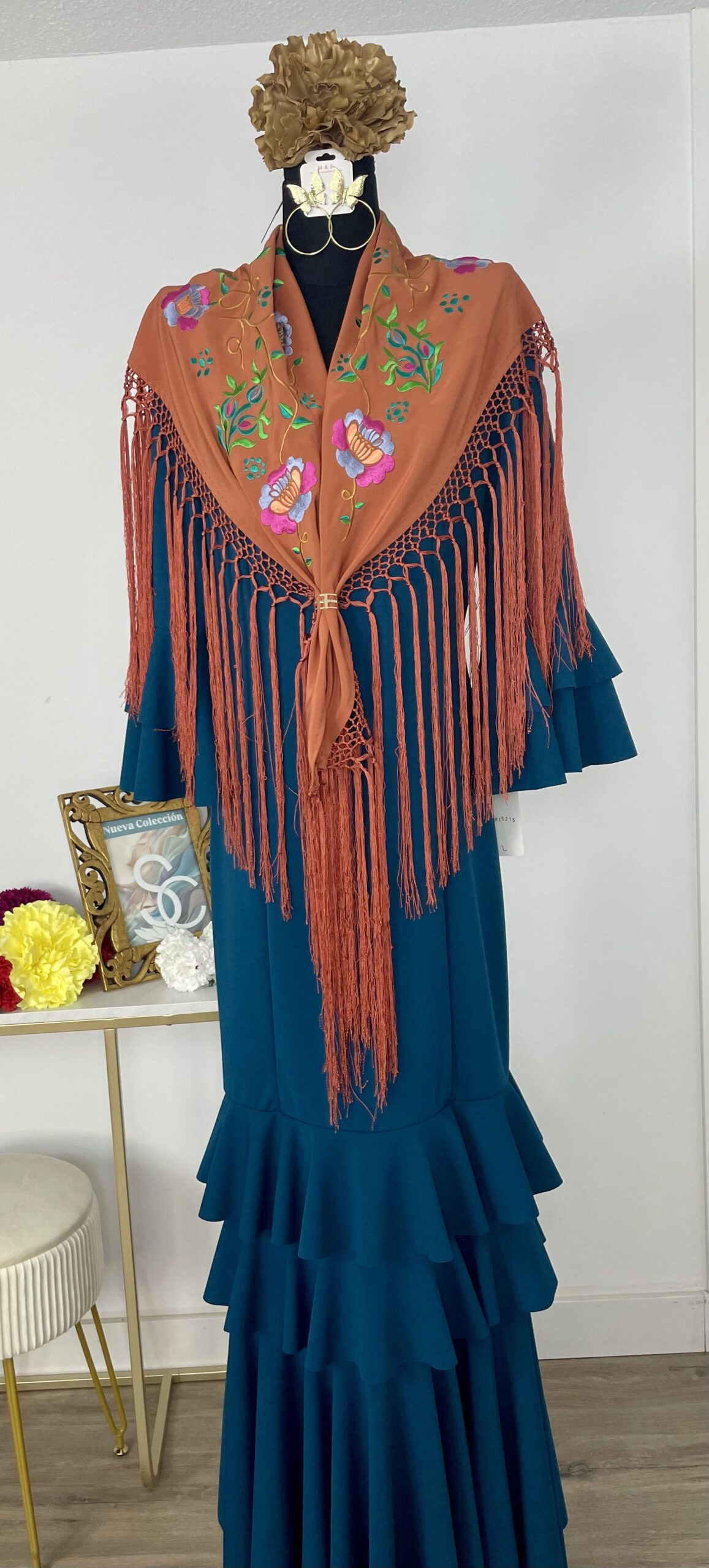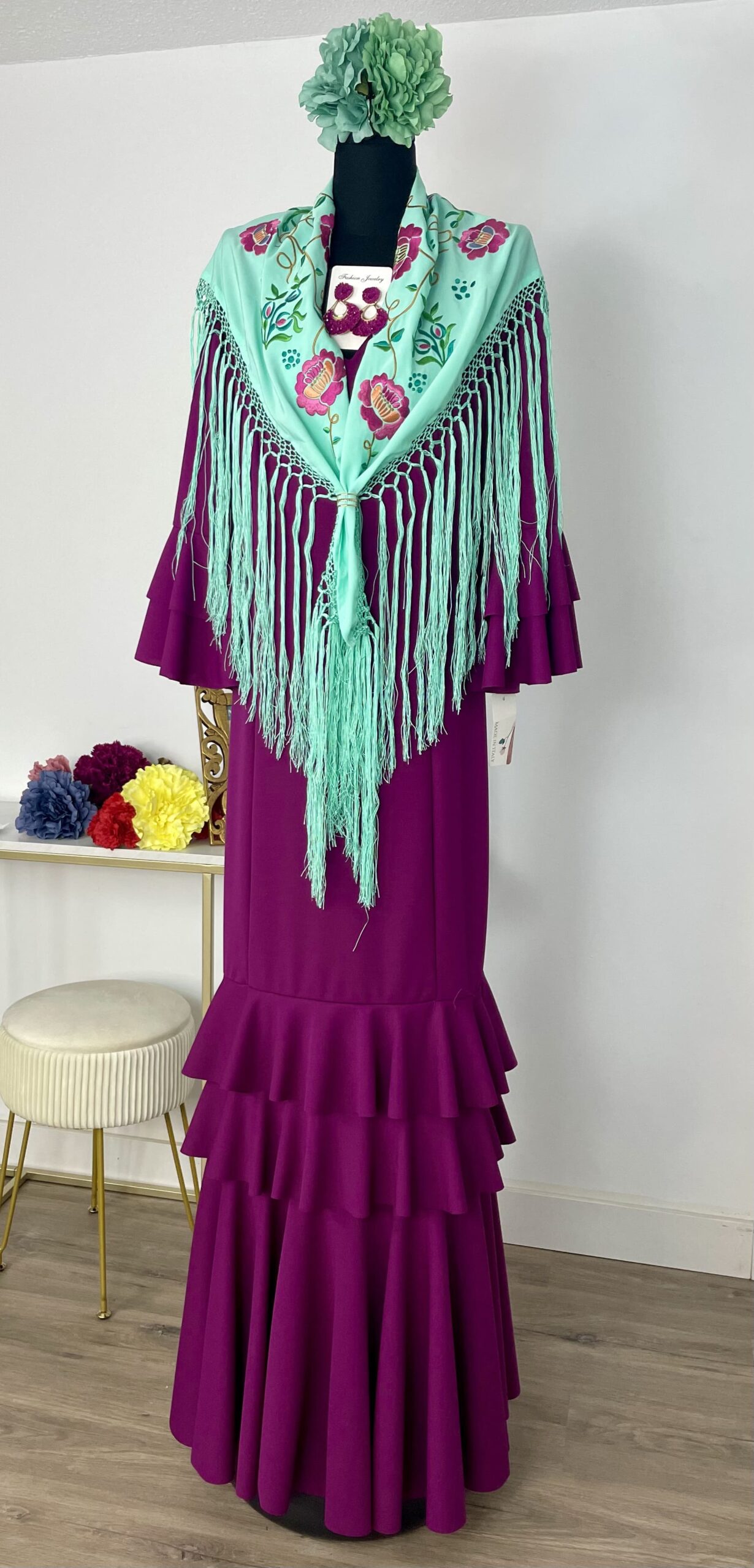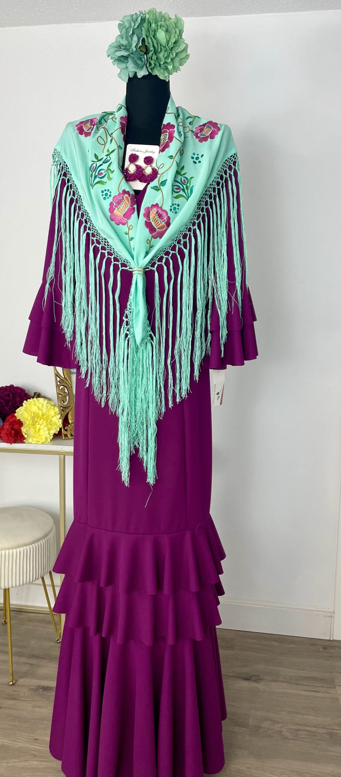 - Tejido de crepé elástico ,muy parecido al Modelo Rocío, la diferencia ,los volantes son dos pequeños y uno largo.