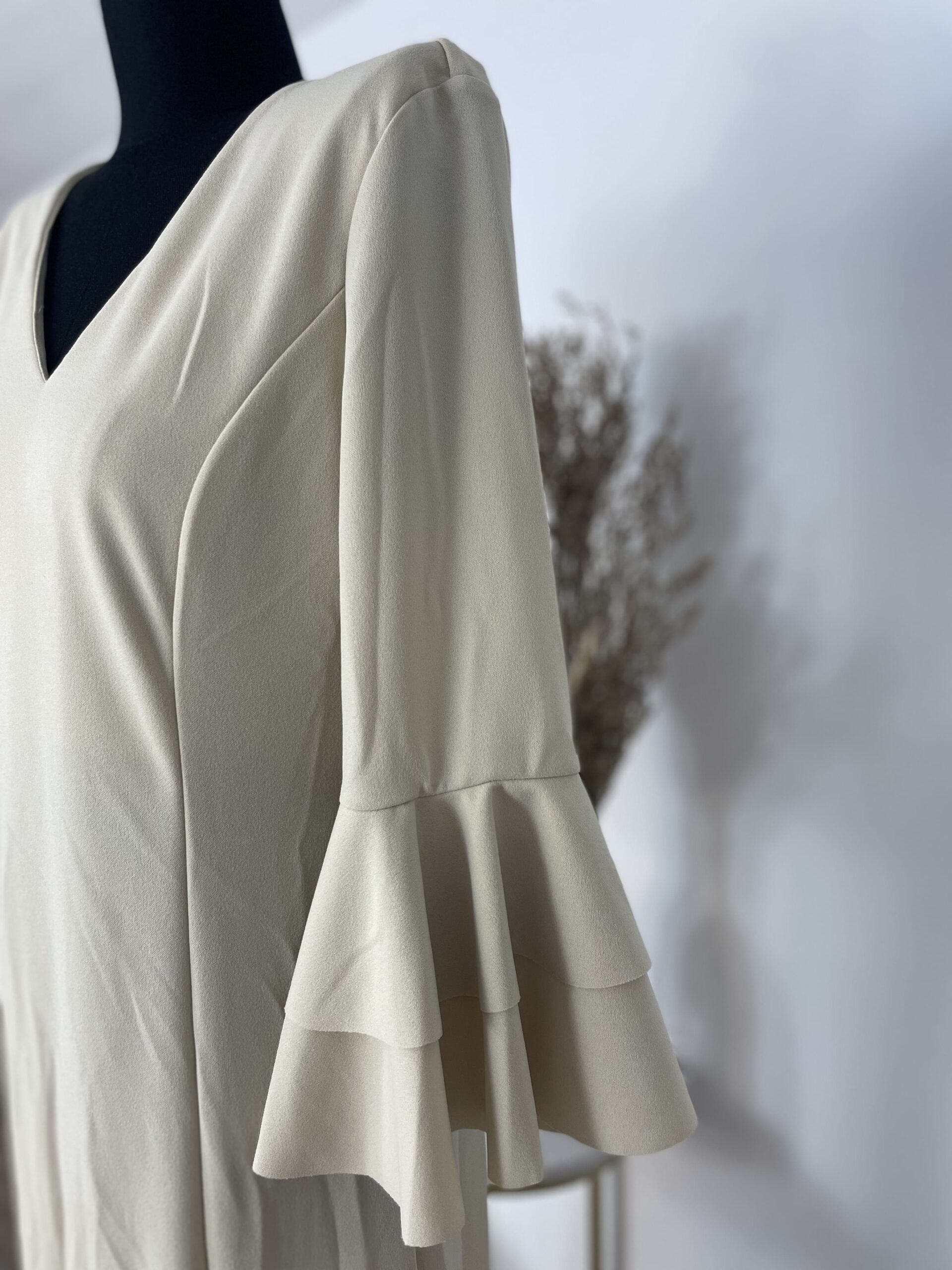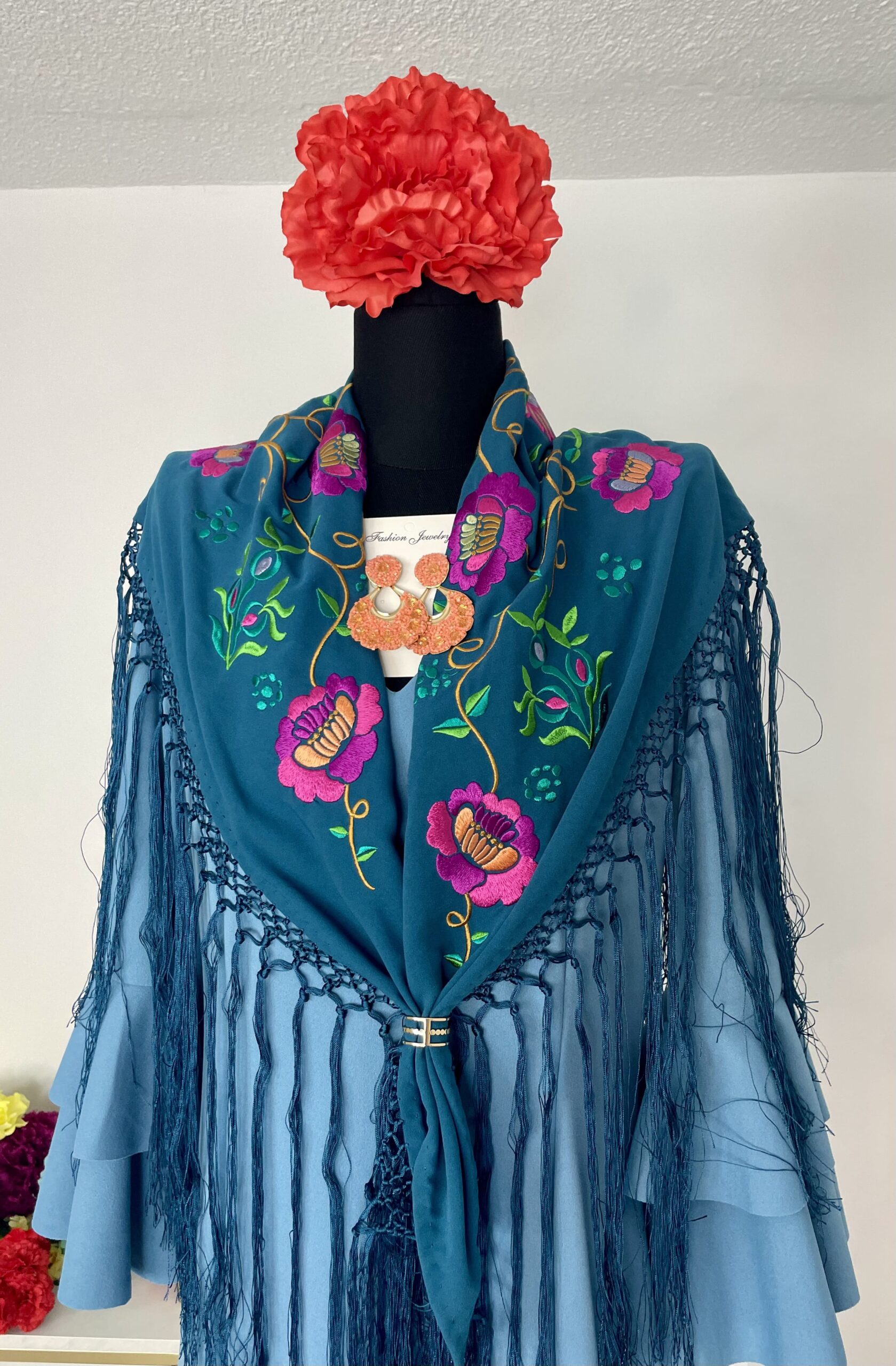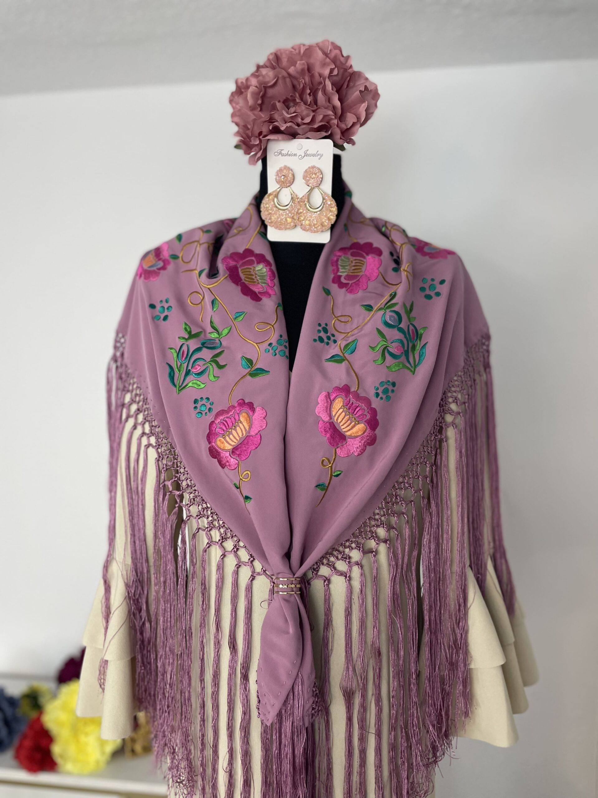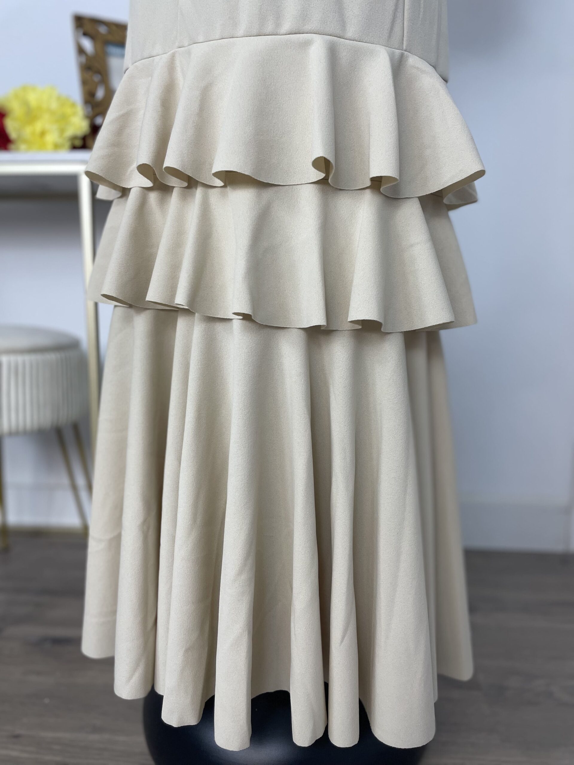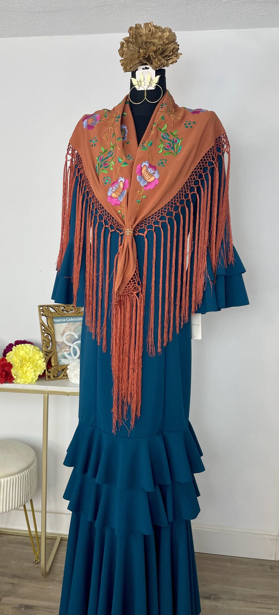 - Tejido de crepé elástico ,muy parecido al Modelo Rocío, la diferencia ,los volantes son dos pequeños y uno largo.