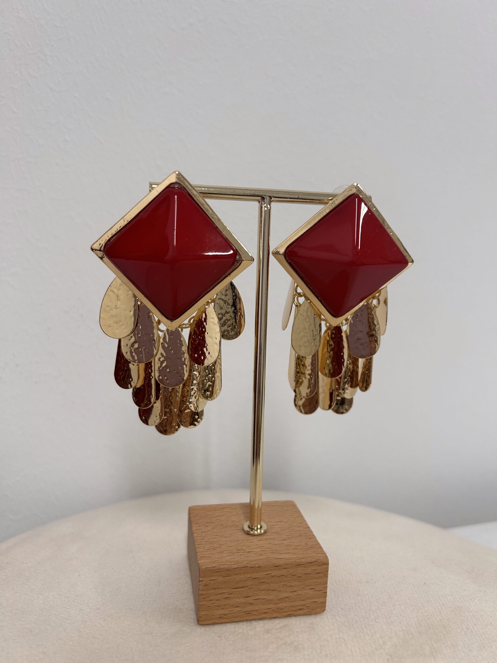 Pendientes Cuadrados, Con Lagrimas En Color Rojo.