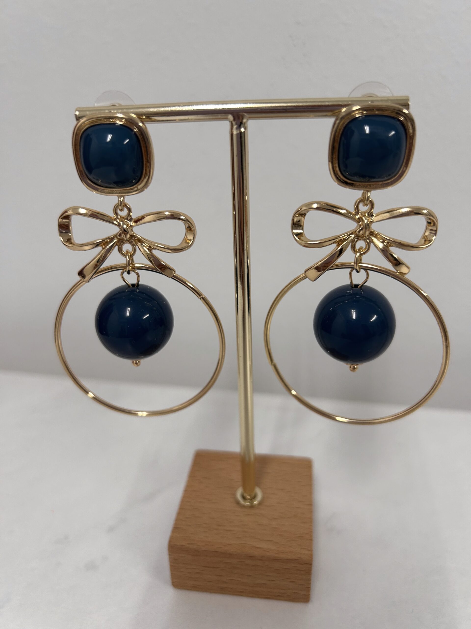 Pendientes Lacito ,Con Una Bola Azul Petróleo.