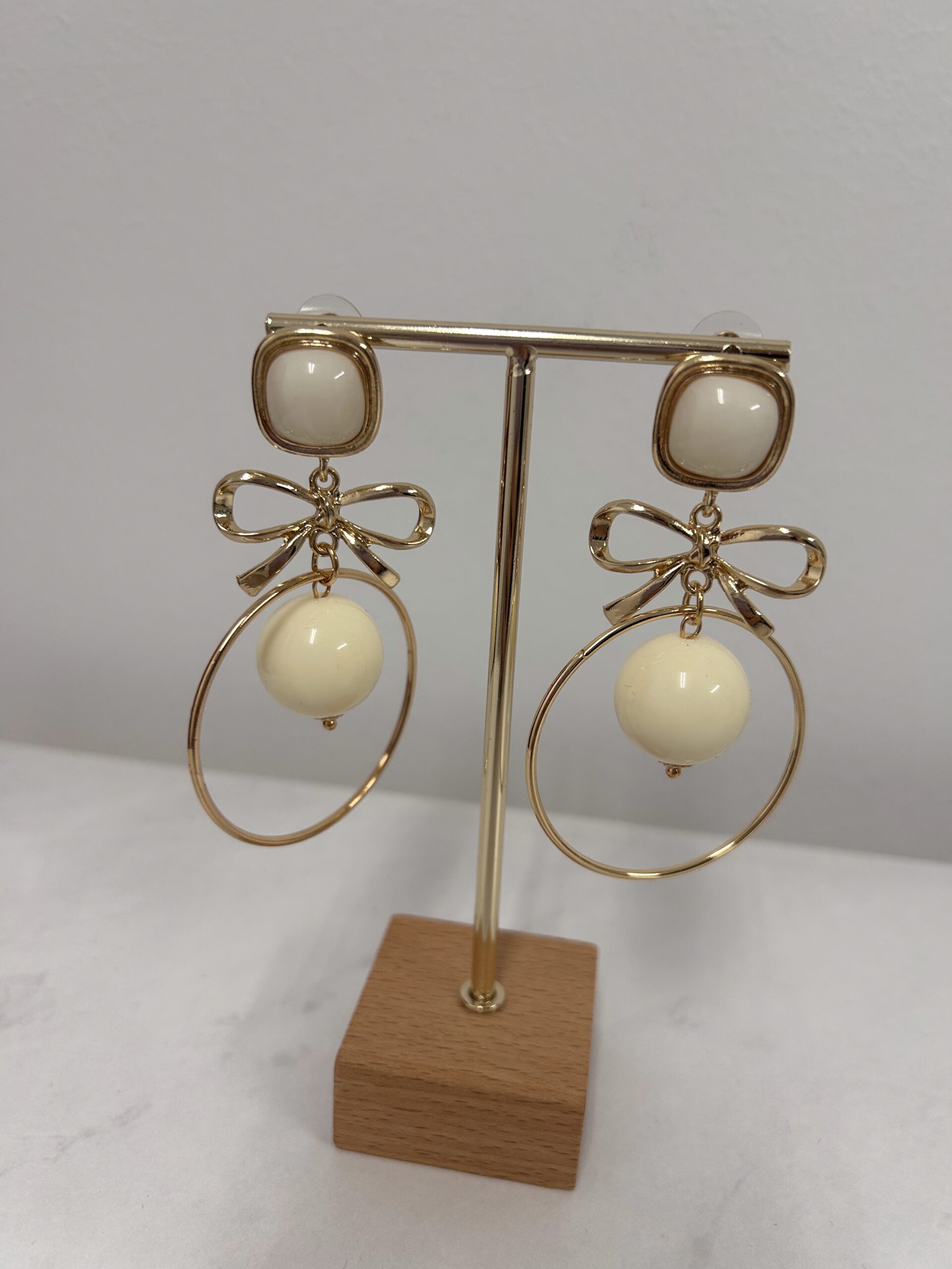 Pendientes Lacito ,Con Una Bola Beige.