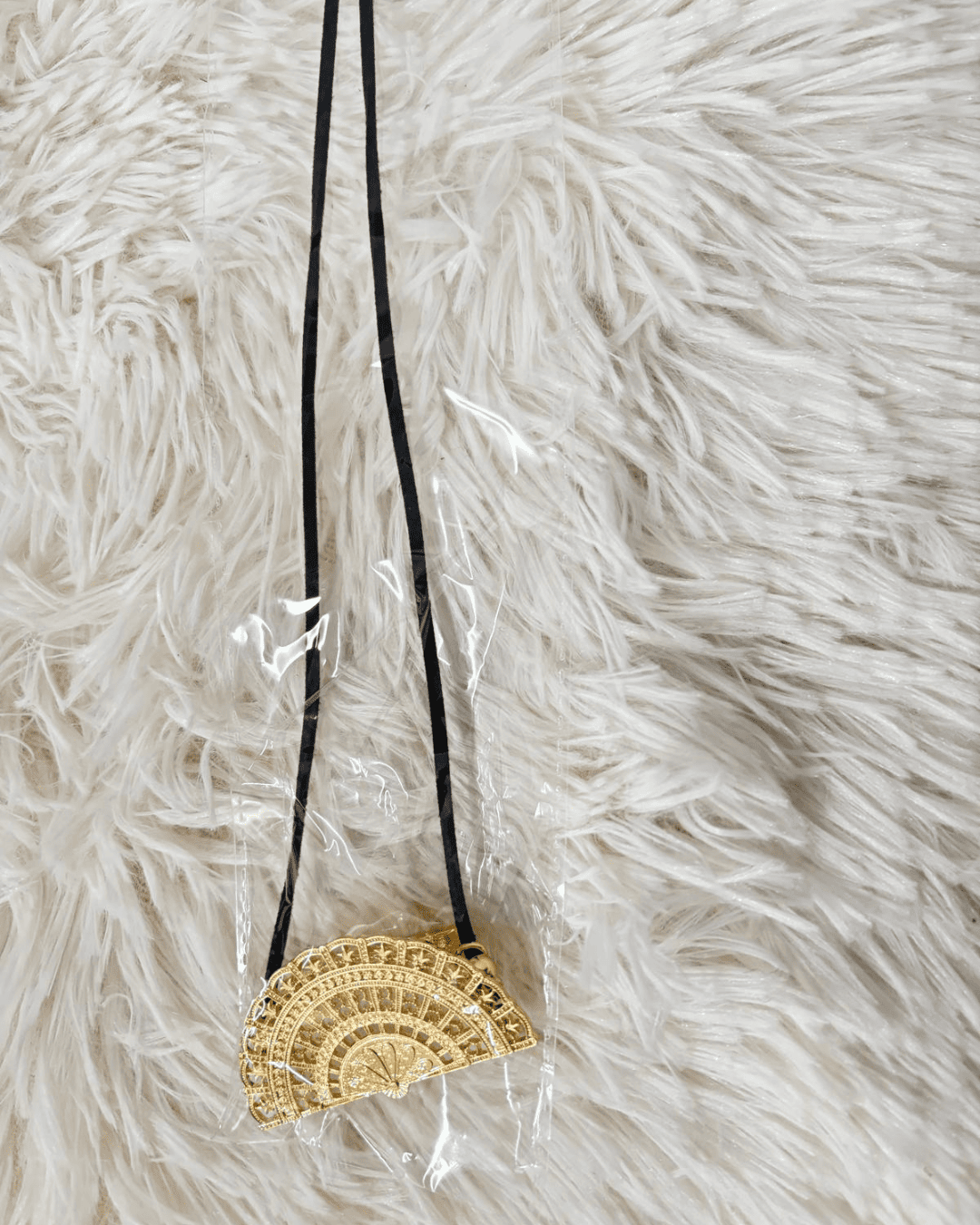 - Colgante porta abanicos en forma de abanico labrado dorado.