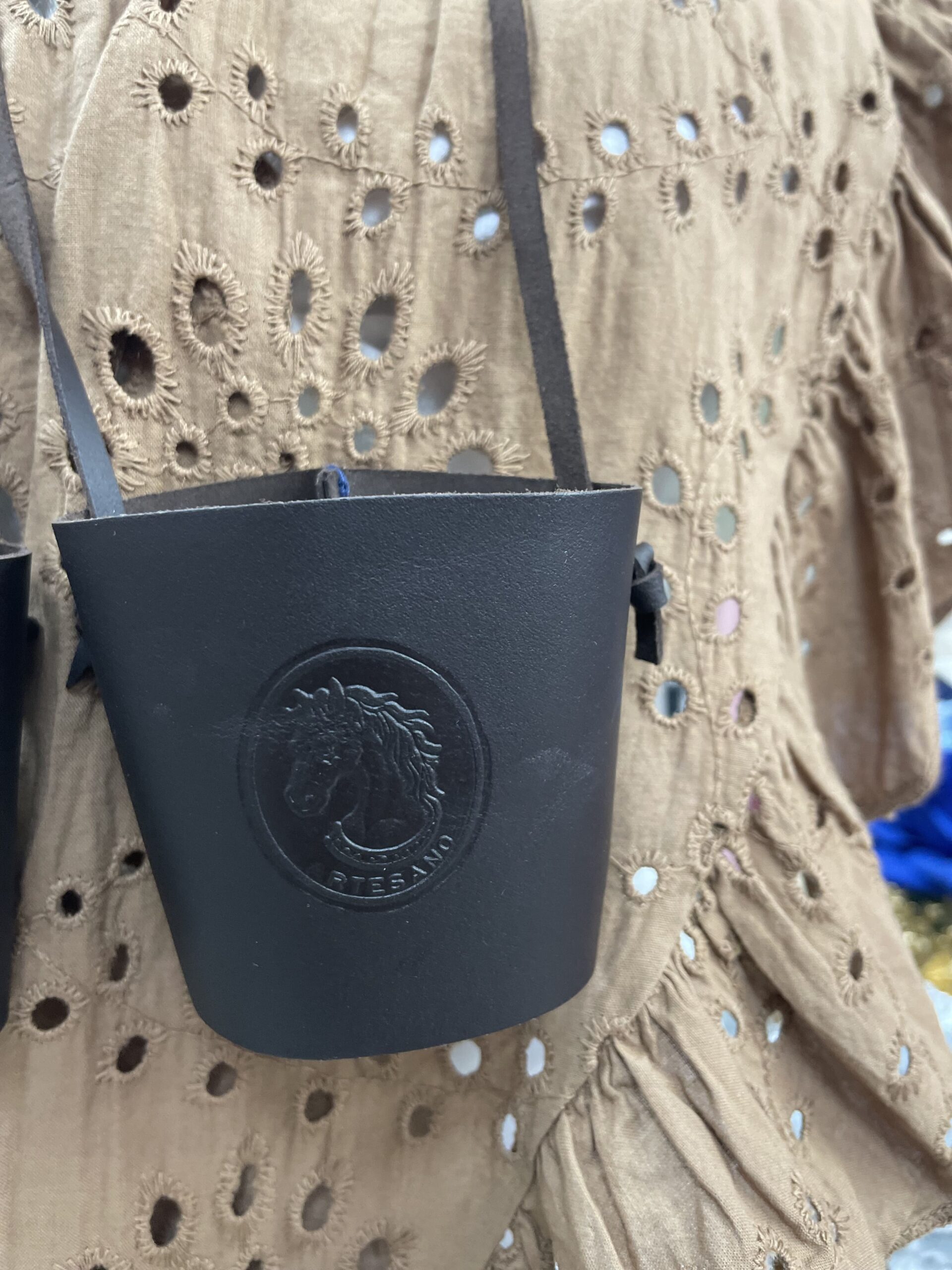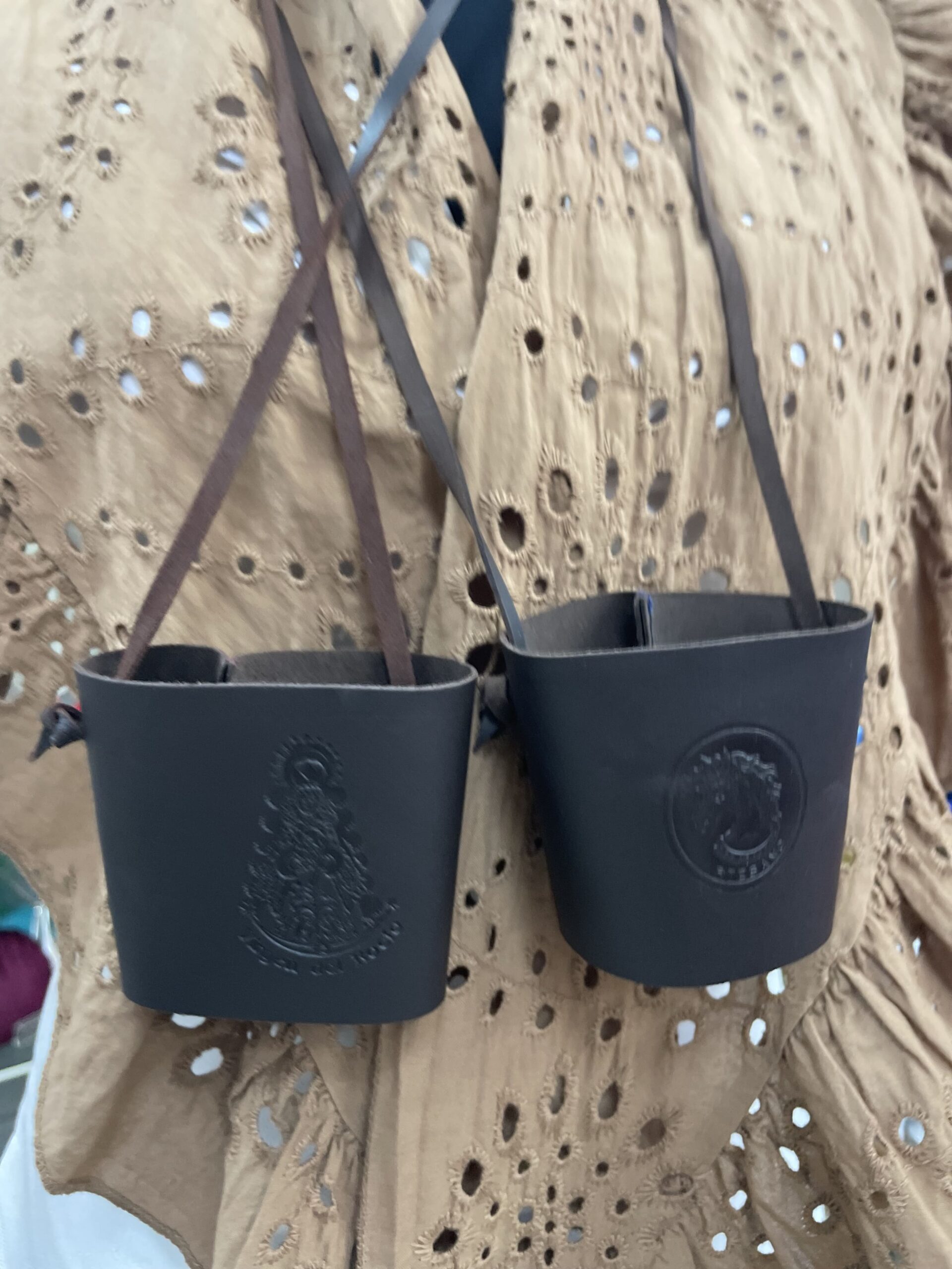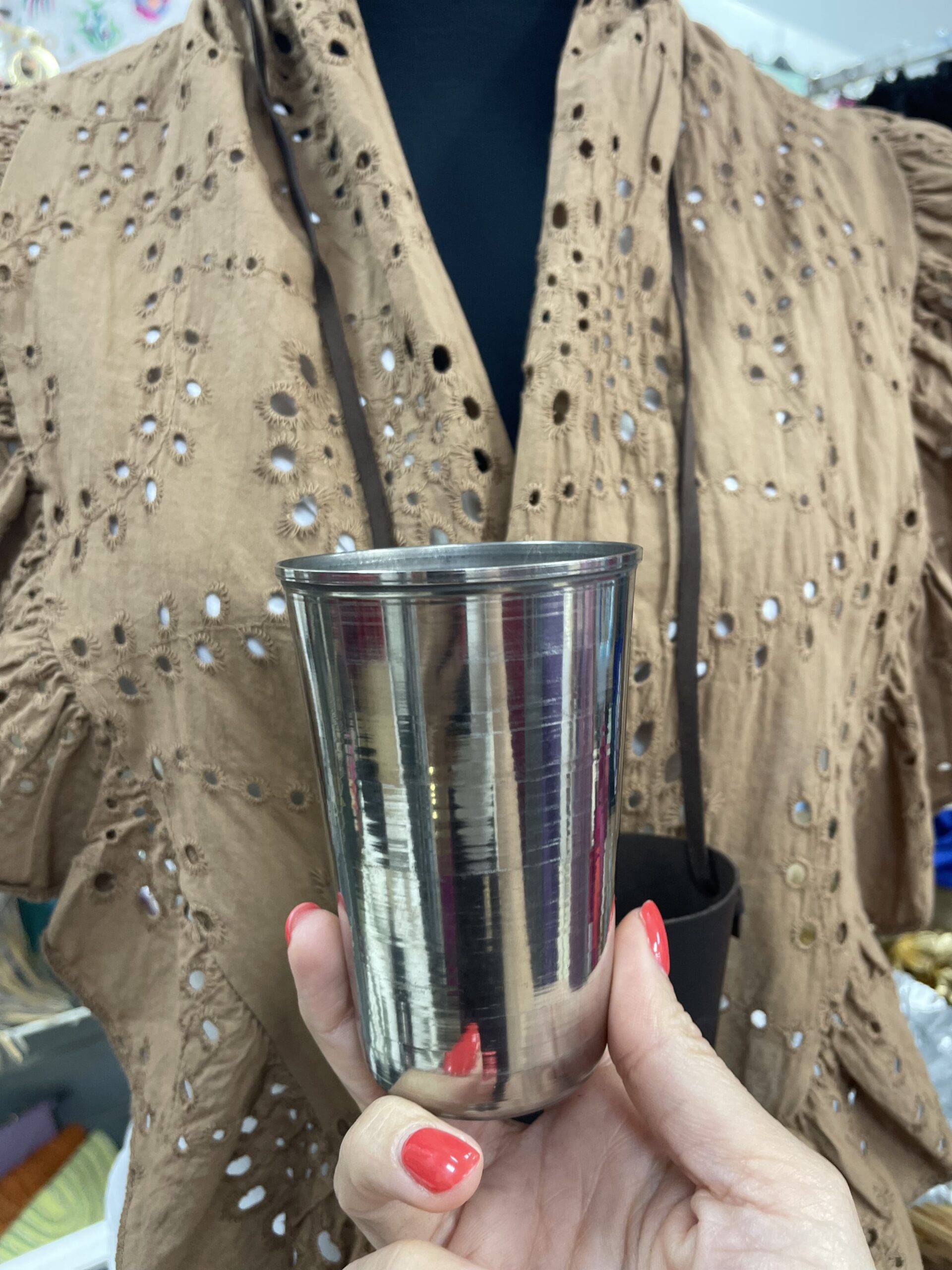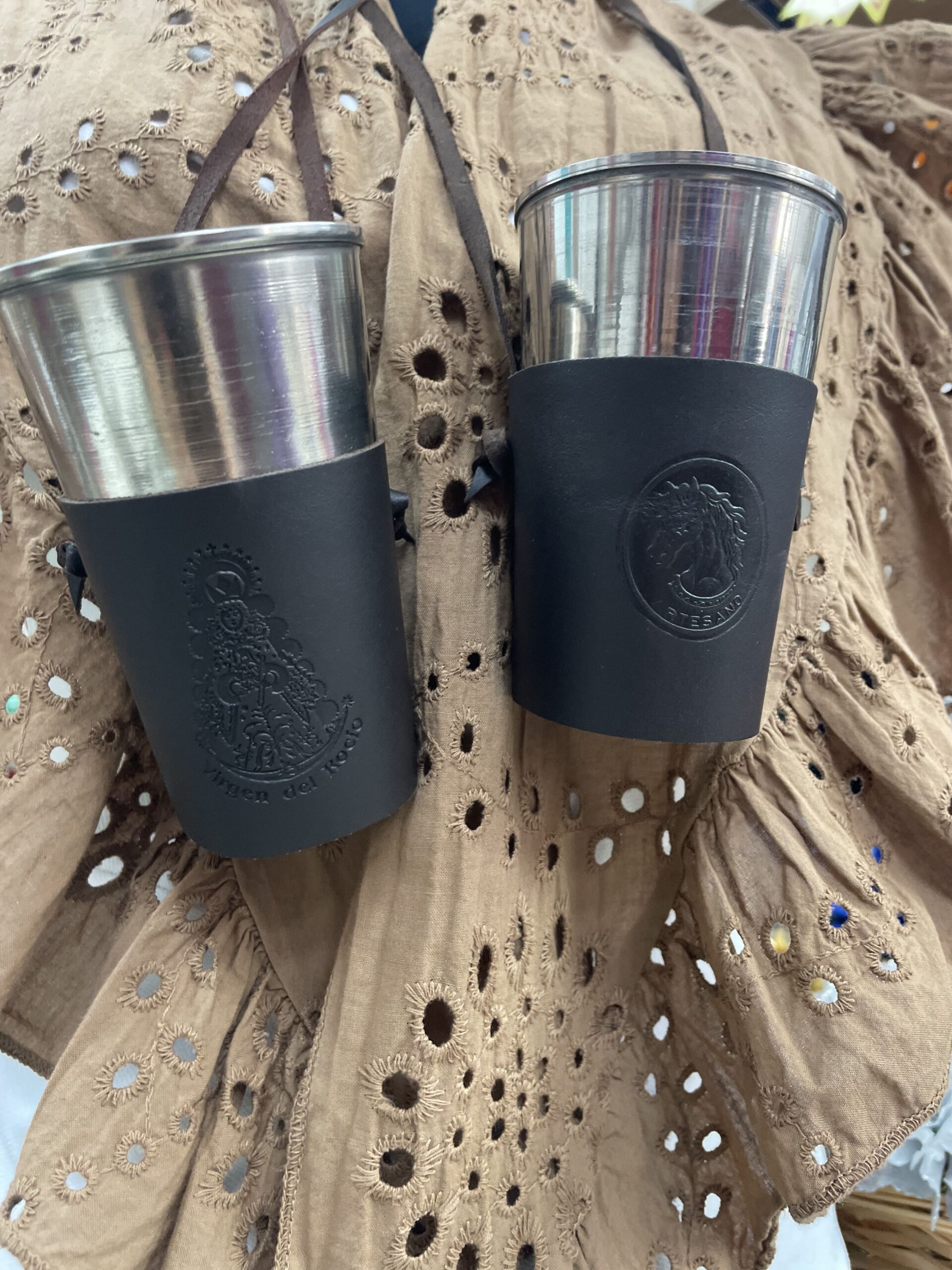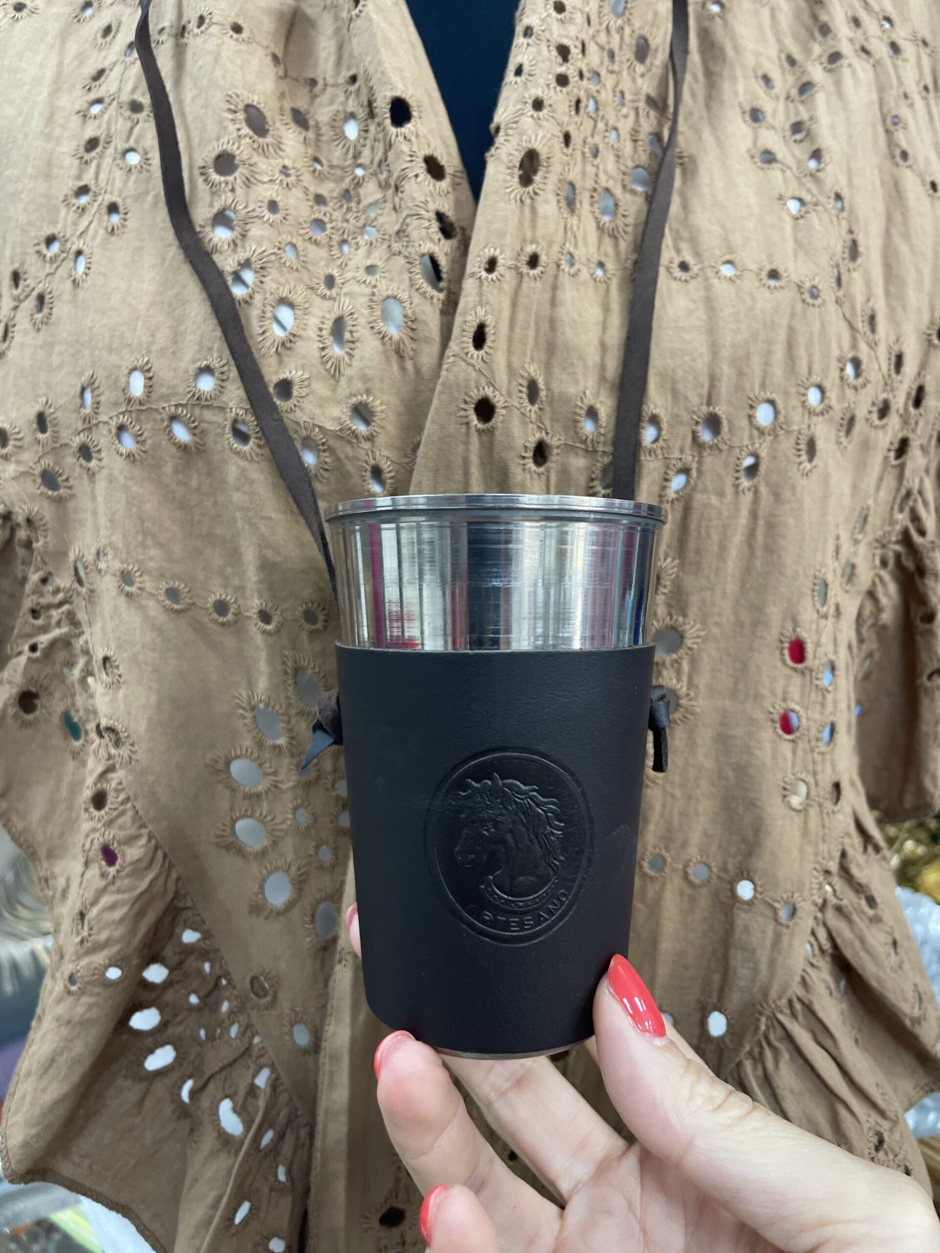 - Vaso de Latón con una altura de cm ,lleva incluido de piel su porta Vasos.