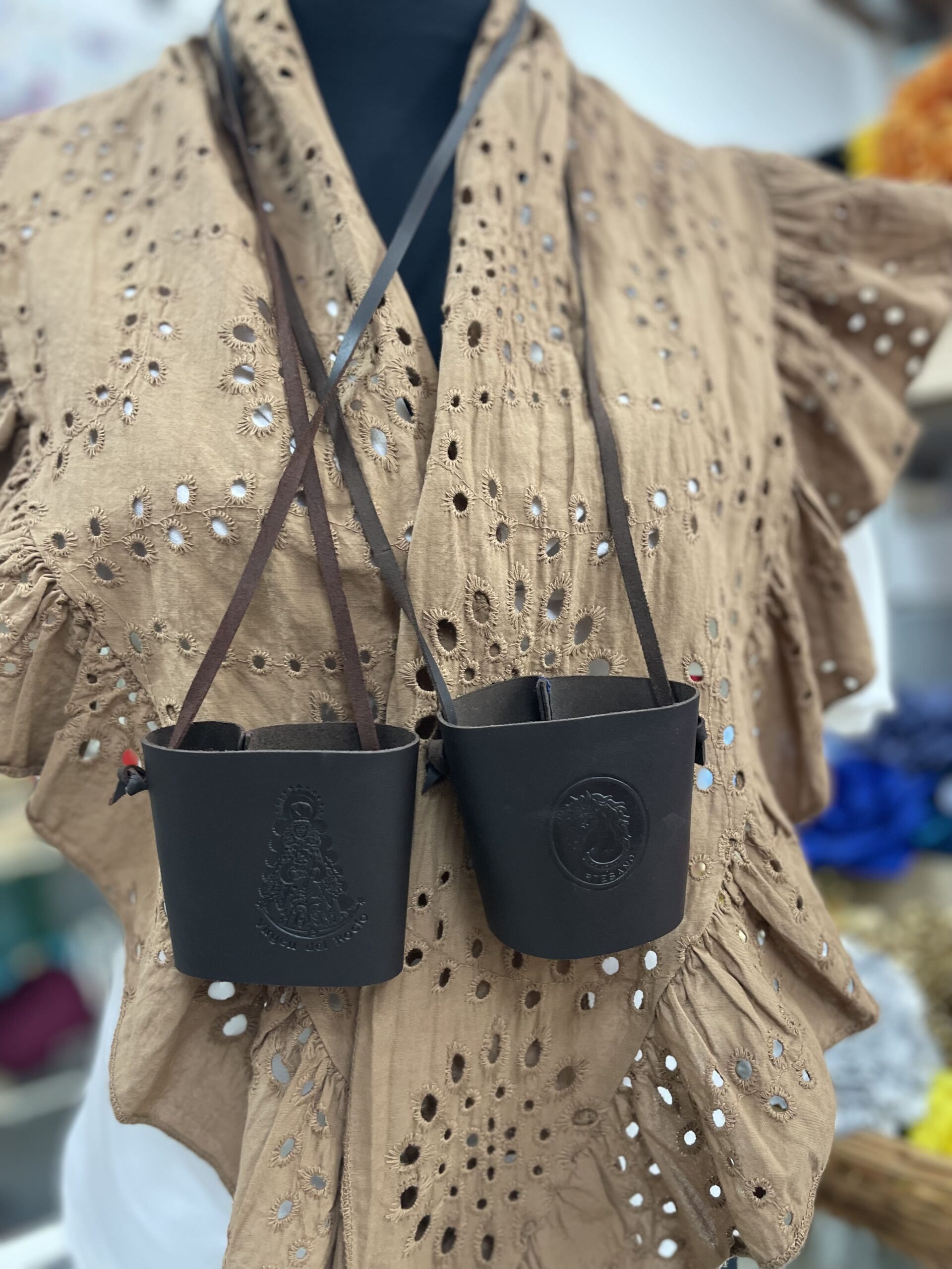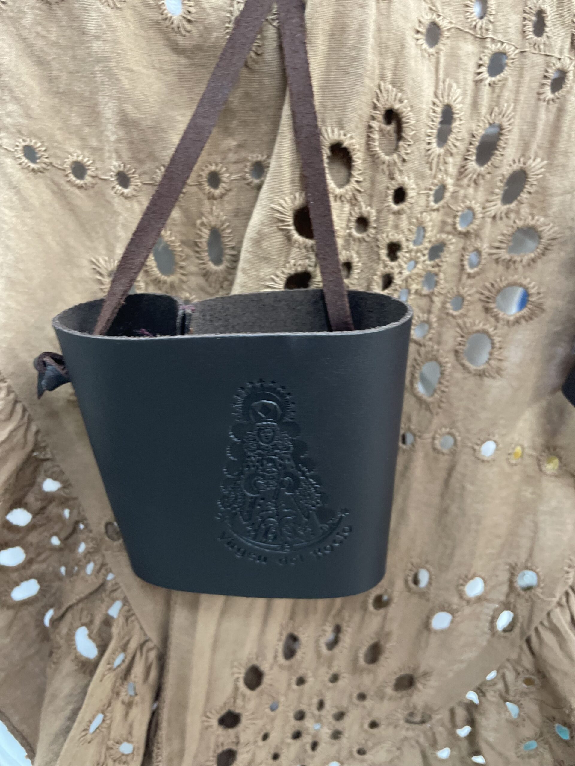 - Tono Marrón oscuro,grabad0 virgen del Roció y un Caballo.