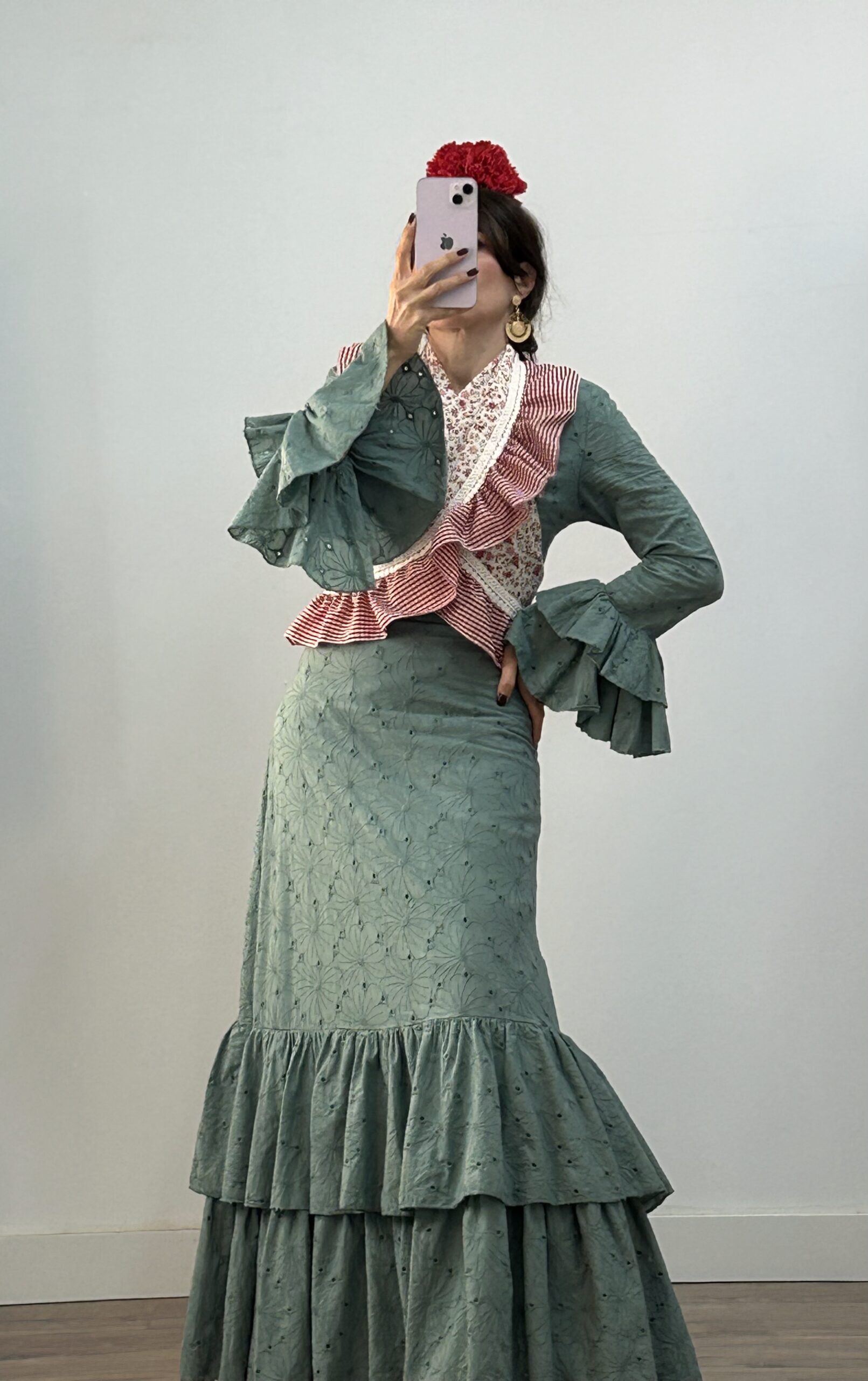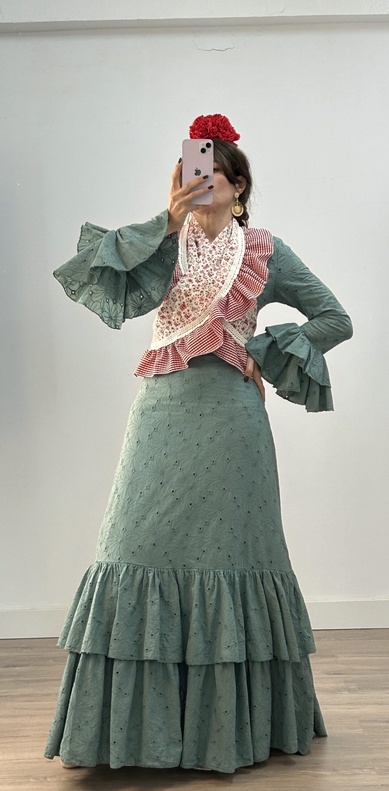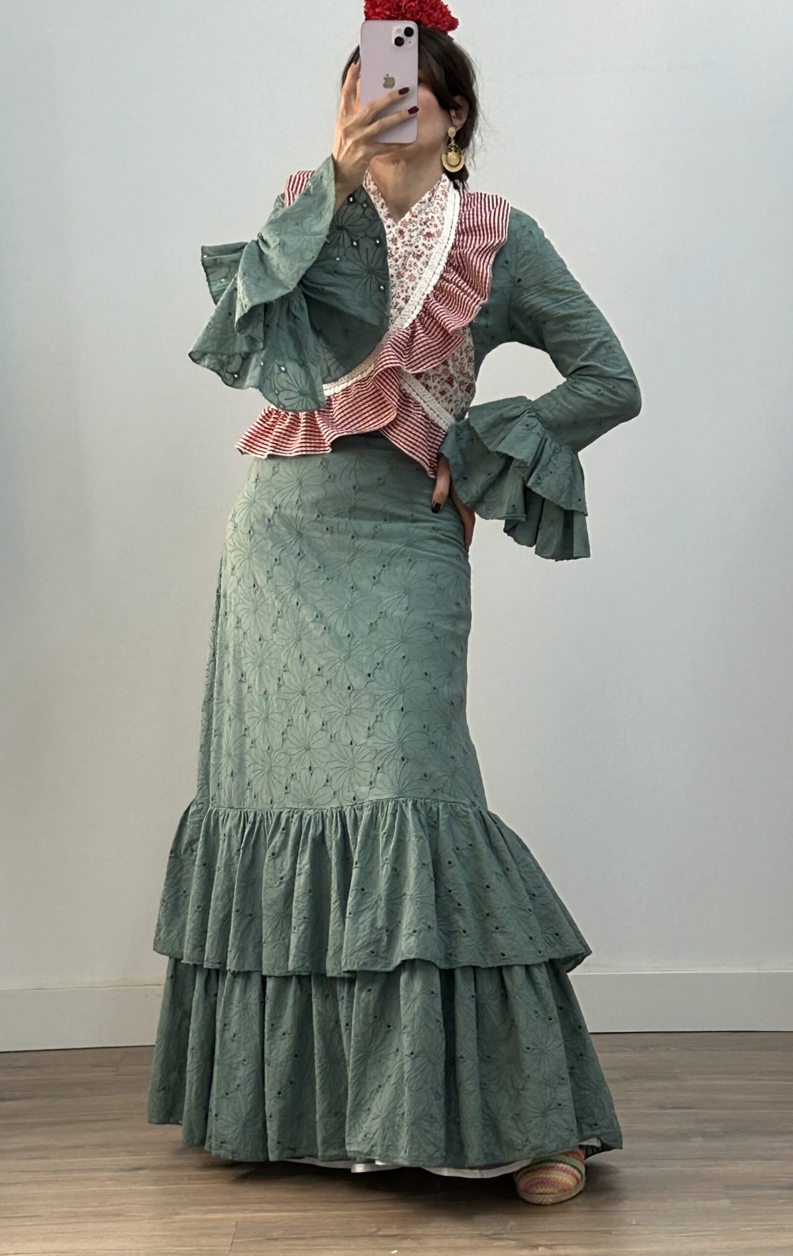 Traje Perforado La Puebla Verde Menta ( este modelo no es elástico )