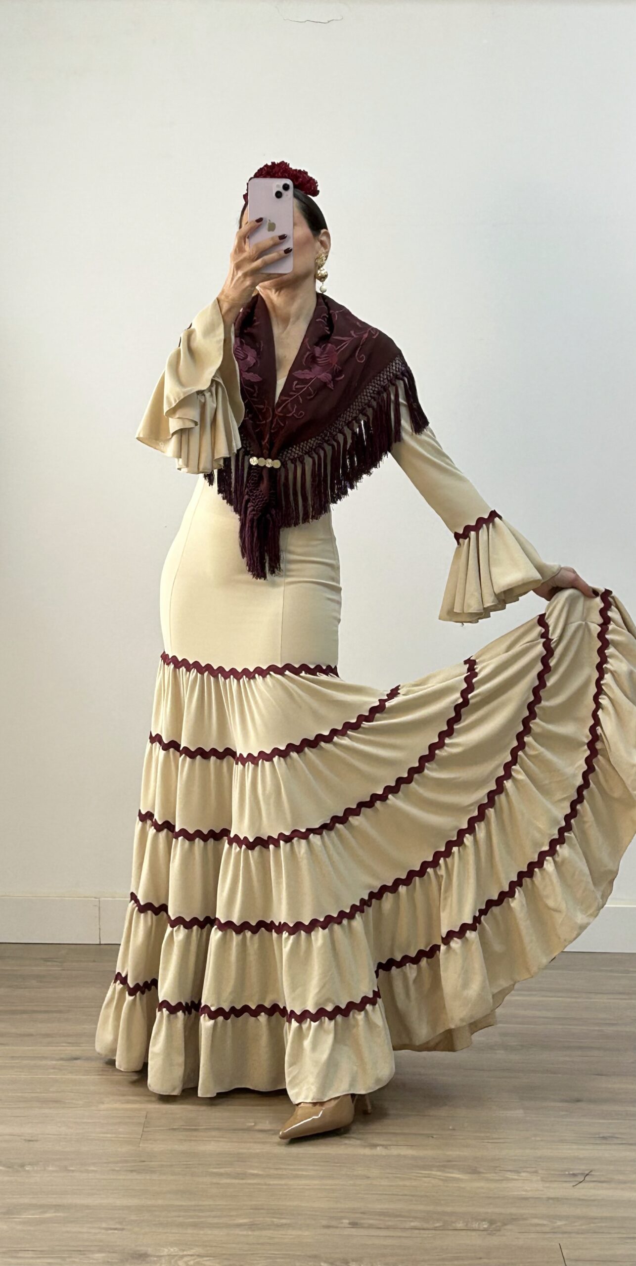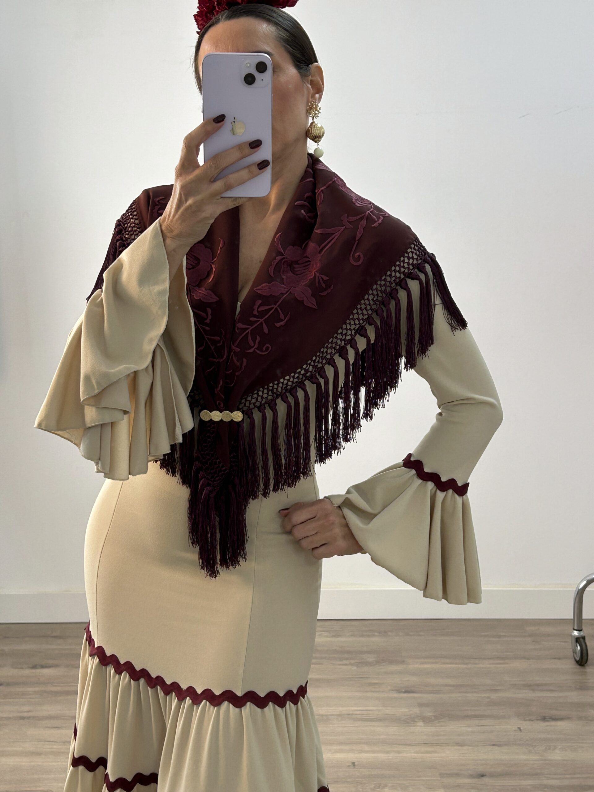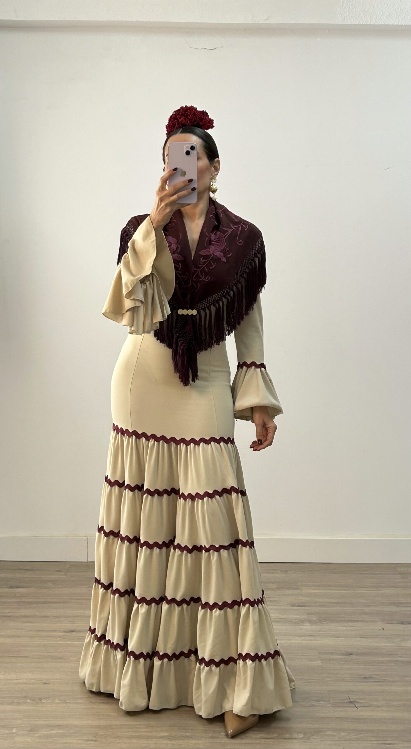 Vestido Canastero Picolina Beige con Burdeos
