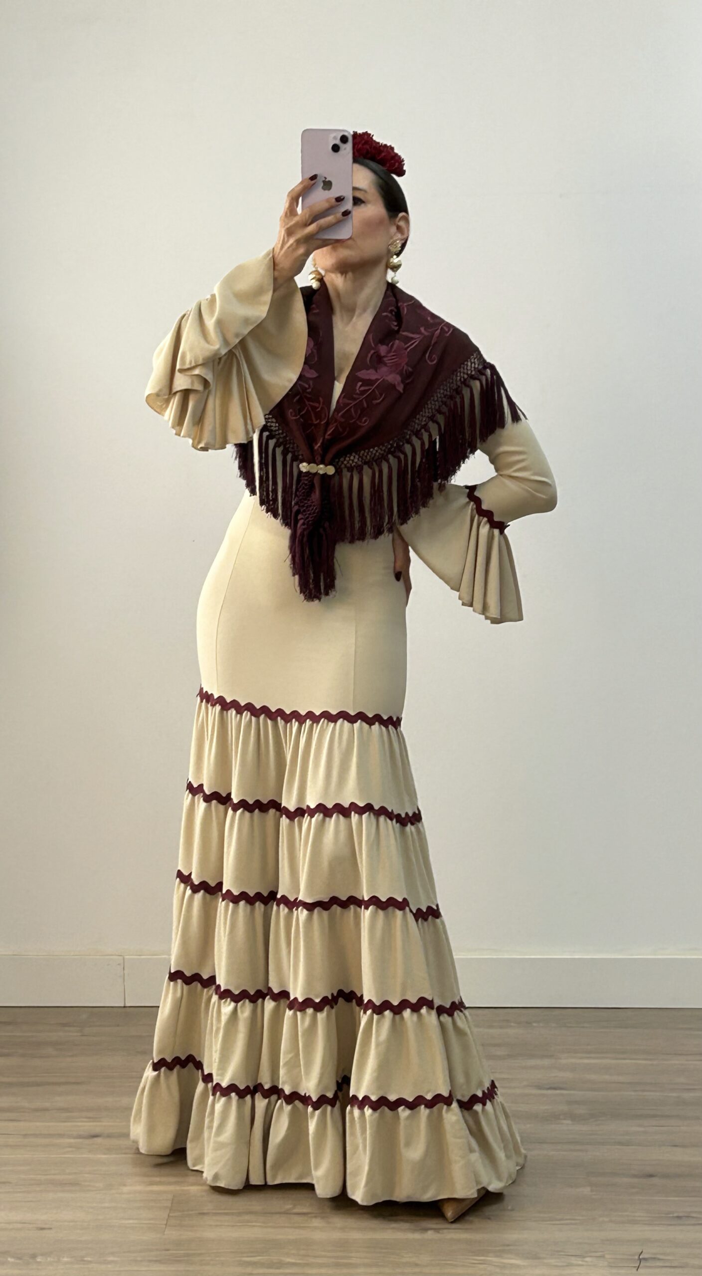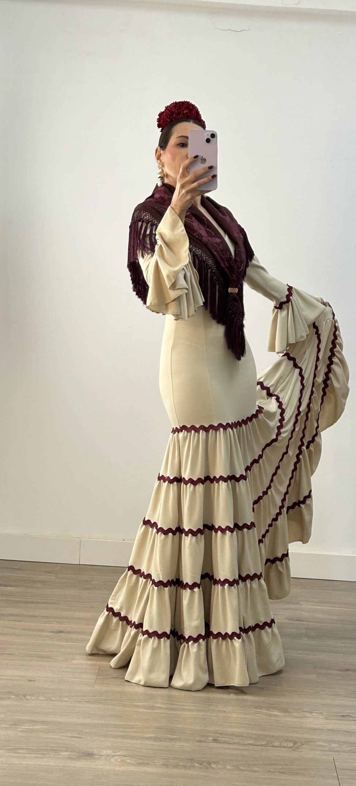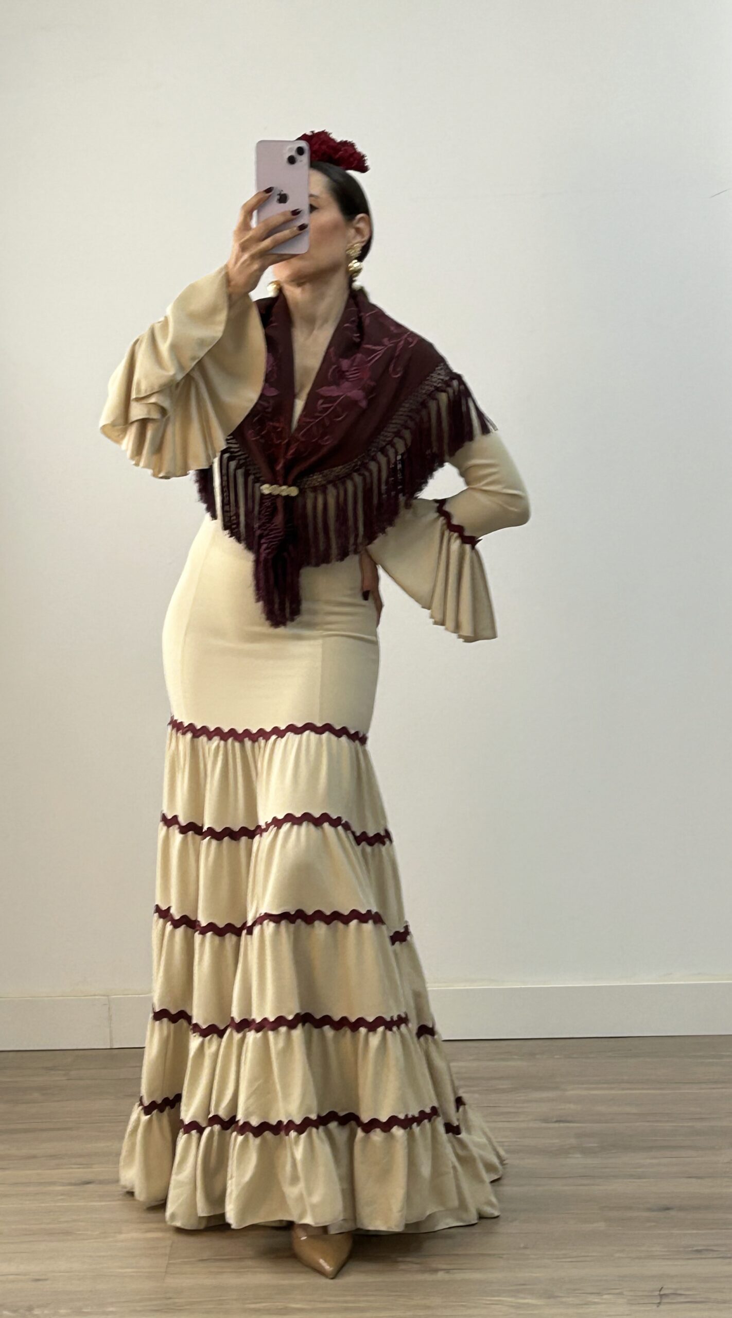 Vestido Canastero Picolina Beige con Burdeos